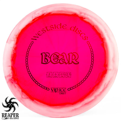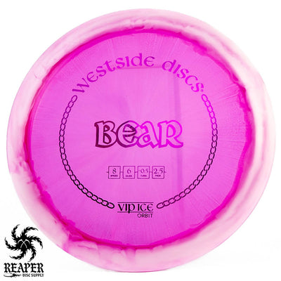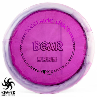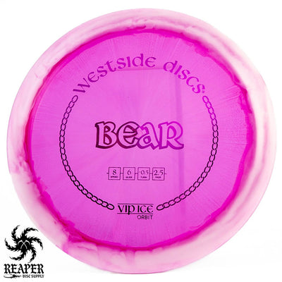 Crafted from ultra-durable VIP Ice, this overstable driver features Westside's unique Orbit effect for extra visual appeal. The Orbit Ice Bear offers a stable to overstable flight with a hint more fade and torque resistance compared to the Stag, making it a powerhouse for any arm speed. Experience its tactile appeal and a reliable, straight flight with a slight fade. Snag a Westside Discs VIP Ice Orbit Bear while you can!