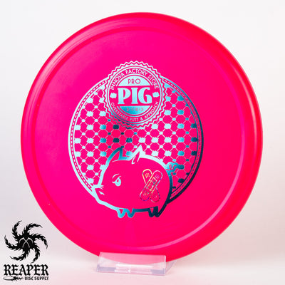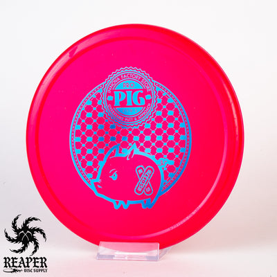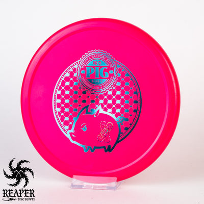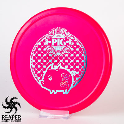 The Innova Pig is a very overstable putt & approach disc that is perfect for forehand approach shots, and predictably stable backhand shots. Innova's Soft Pro plastic is the perfect combination of grippy-ness and flexibility.
