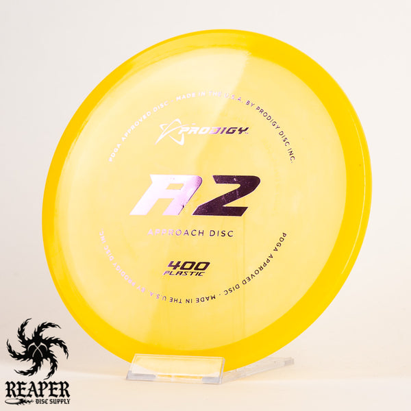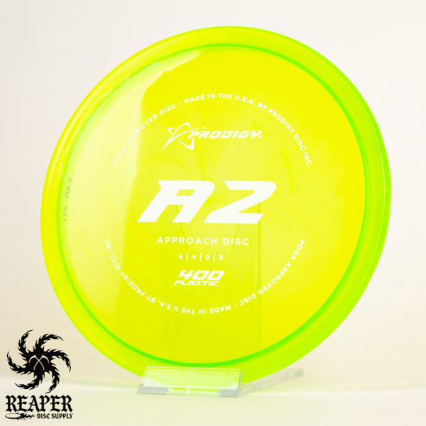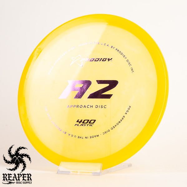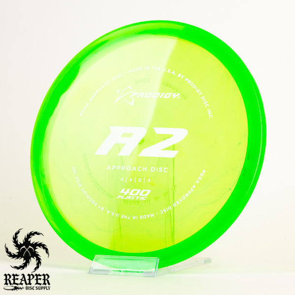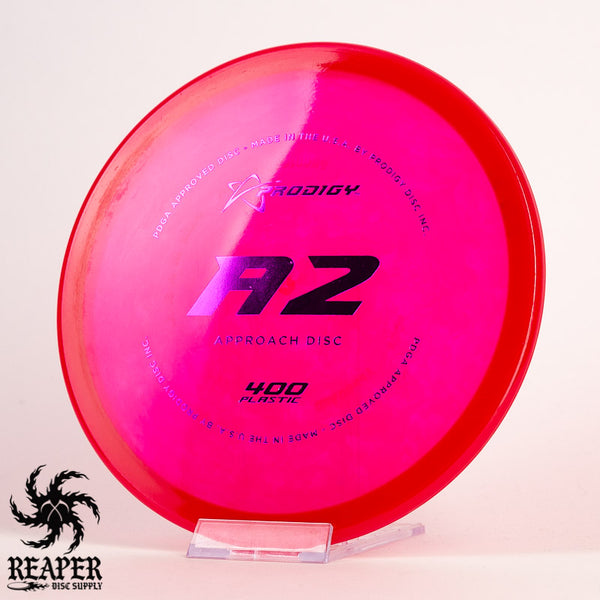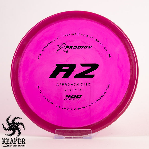 The Prodigy A2 400 is an overstable approach/midrange disc made with premium 400 plastic. Prodigy's 400 plastic is perfect for approach discs like the A2 because it delivers phenomenal grip and can handle quite a beating.