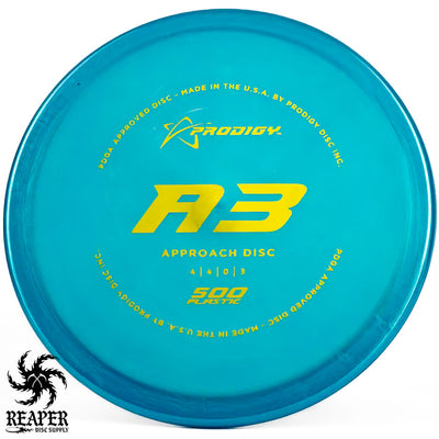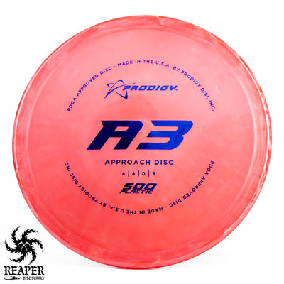 The Prodigy 500 A3, with its premium pearlescent finish, offers a confident, less gummy grip and a firm flight plate. This disc provides a perfect balance of flex and stability for accurate, overstable approaches with style.