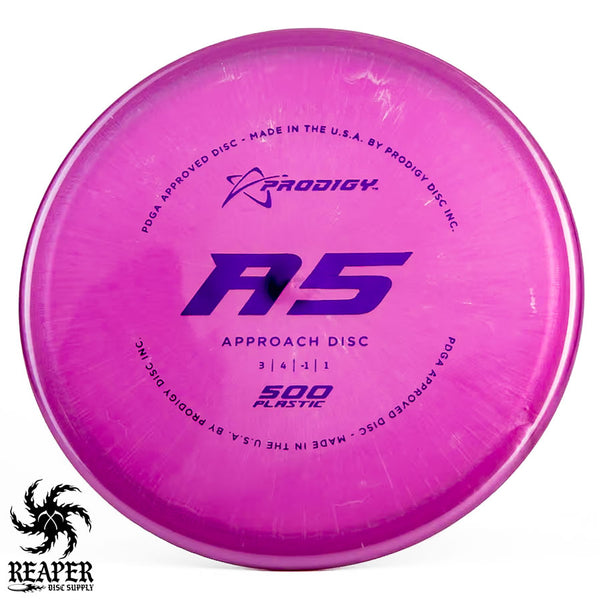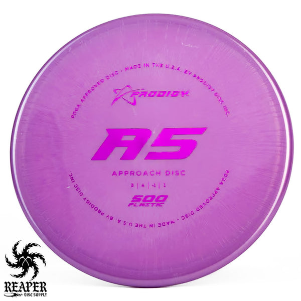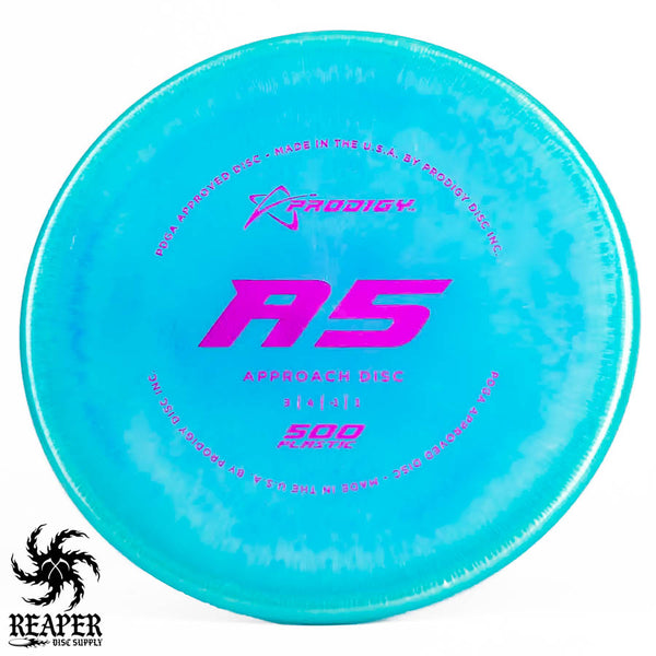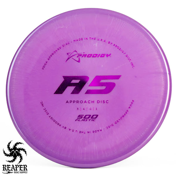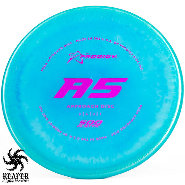 The Prodigy 500 A5 is a stable approach disc, designed for precision and control. Made from Prodigy's 500 plastic, it offers a confident grip and stiffer flight plate. This disc excels at maintaining a straight flight with a reliable overstable finish, great for any skill level.