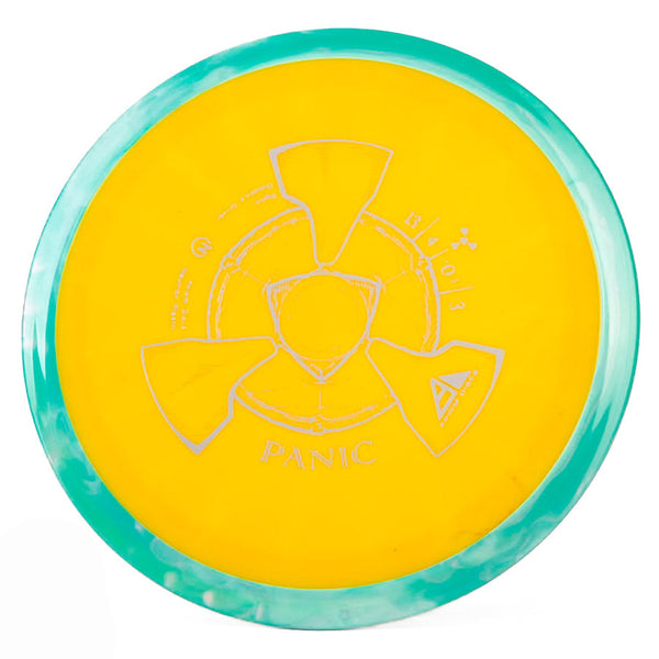 The Neutron Panic delivers impressive performance as a highly overstable distance driver, particularly shining in windy conditions where it fights headwinds with confidence. The disc serves dual purposes - working well for power throwers seeking reliable utility drives while also providing newer players a great introduction to overstable flight patterns. Built with premium Neutron plastic and sharing similar characteristics to a seasoned MVP Nitro, this disc maintains consistent flight patterns and reliable fade even in challenging conditions.