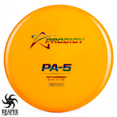The Prodigy 400 PA-5 is an understable putt and approach disc known for its smooth performance. Made from Prodigy's popular 400 plastic, it offers excellent grip and a balance of flexibility and firmness, providing consistent, reliable results on the course. Its durability and feel make it a favorite for every skill level.