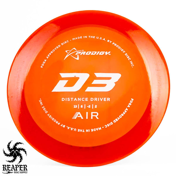 The Prodigy AIR D3 is a distance driver that combines a lightweight design with high performance. Made from Prodigy's innovative AIR Plastic, this disc offers the same shot performance as its heavier counterparts, with added glide for effortless distance. It's a versatile disc, suitable for both intermediate and advanced players.