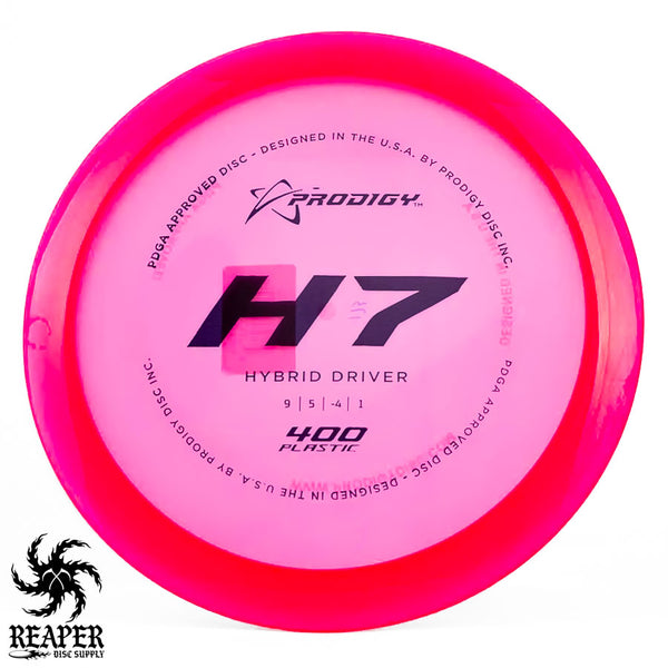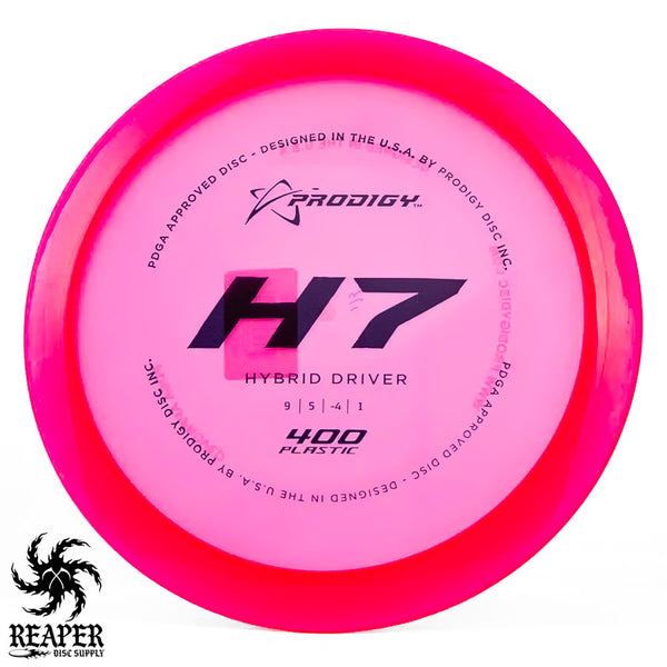 The Prodigy 400 H7 is an understable control driver designed to give players with varying power levels the ability to shape distance shots with ease. In Prodigy's durable 400 plastic, this flippy driver has reliable grip and resilience, making it ideal for achieving controlled anhyzer lines that hold without prematurely fading back.