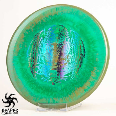 These limited edition Prodigy PX-3's are made with gorgeous 500 Spectrum plastic and feature a sweet eagle and frog stamp. In 500 plastic, this disc makes for the perfect throwing/approach putter. It has enough stability to handle drives, and the 500 plastic will handle any damage you throw at it. With players like Gannon Buhr throwing it, the PX-3 is quickly becoming one of Prodigy's most popular putters.
