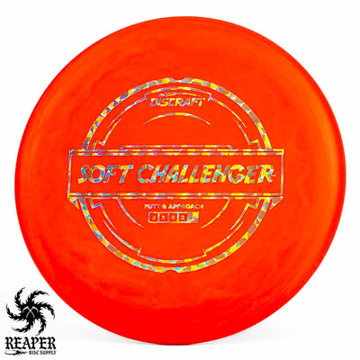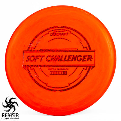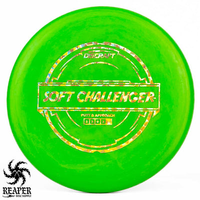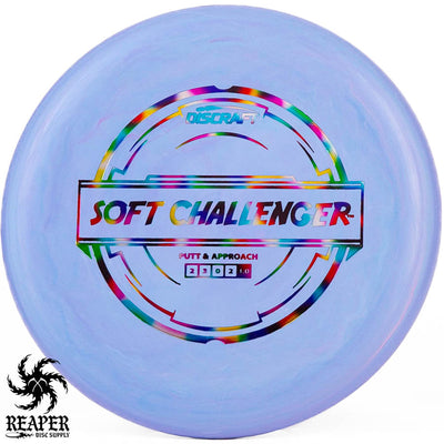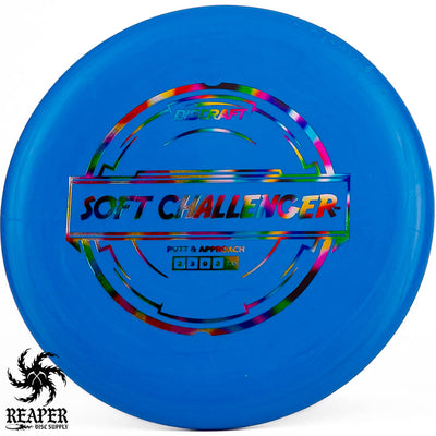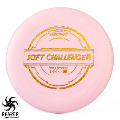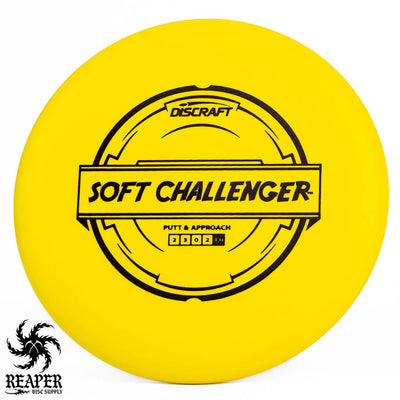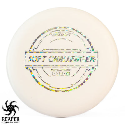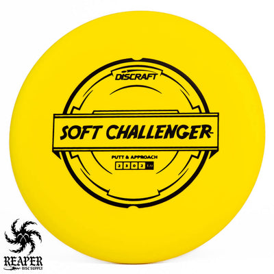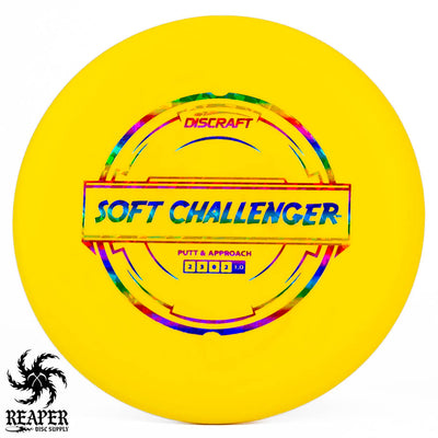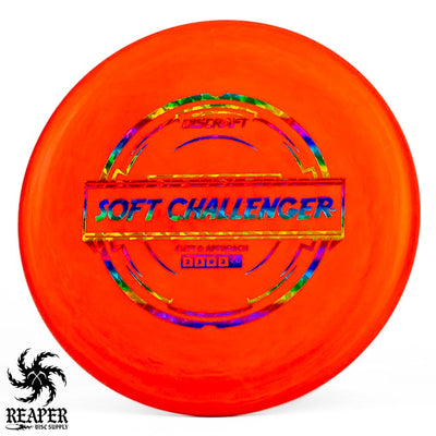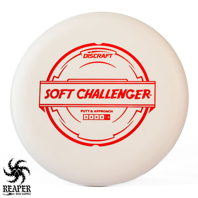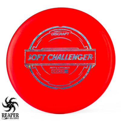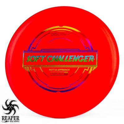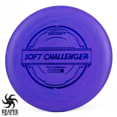 The Discraft Rubber Blend Soft Challenger is a stable to overstable putter that offers incredible grips and control. If you like putters with a decent amount of predictable hyzer fade at the end of their flight, you may love the Soft Challenger. With several cool colors and stamps, what's not to love about the Discraft Putter Blend Soft Challenger?