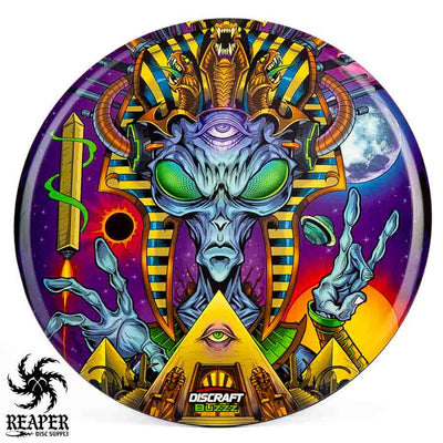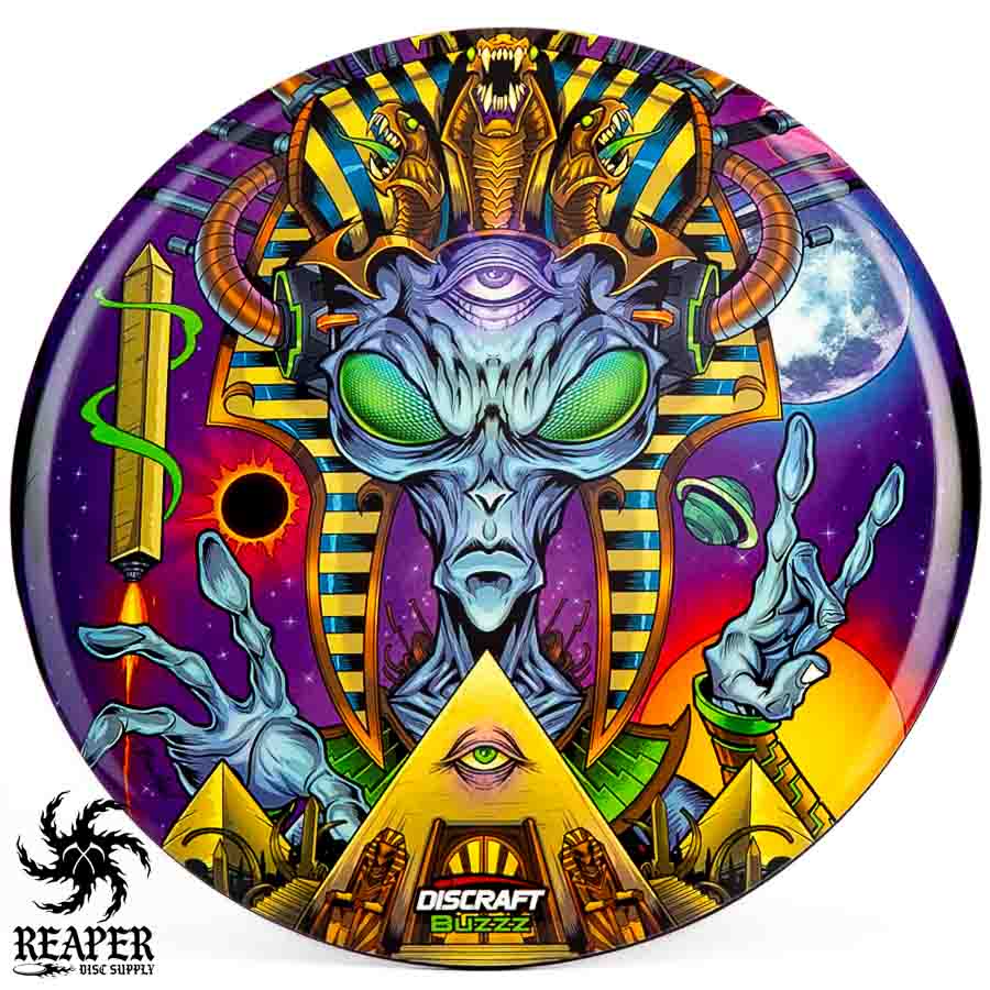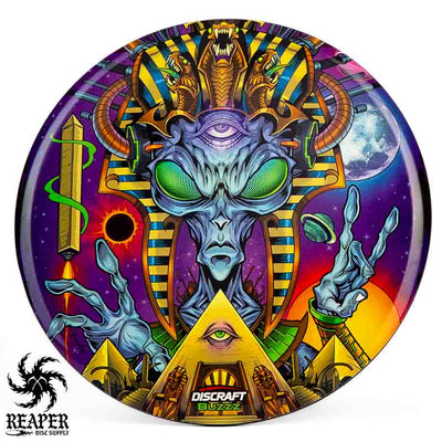 These Discraft Supercolor 'Ancient Alien' Buzzzes feature unique, colorful artwork by Brian Allen.