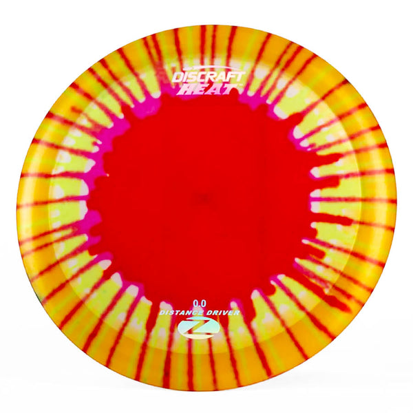 The Discraft Z Fly Dye Heat is an understable distance driver known for its impressive glide and easy-to-control flight path. Featuring the unique Fly Dye design, each disc has a vibrant, one-of-a-kind appearance. Ideal for players of all skill levels, the Z Fly Dye Heat excels in achieving long, turnover shots and hyzer flips with minimal effort.