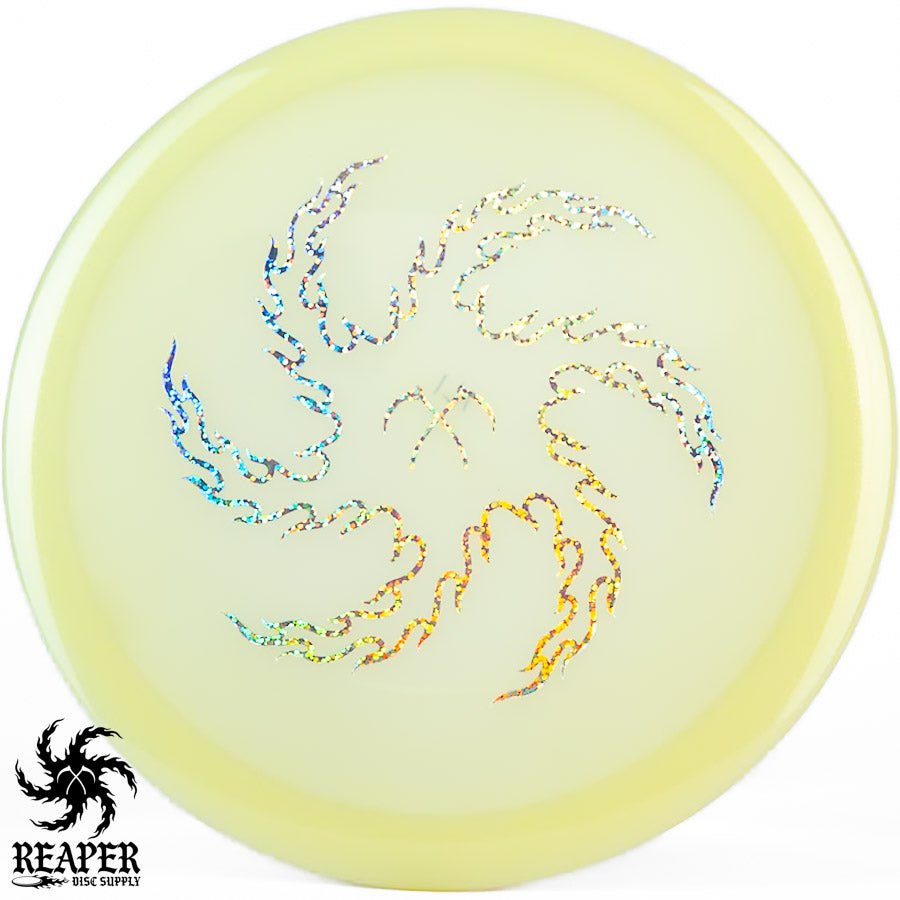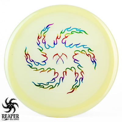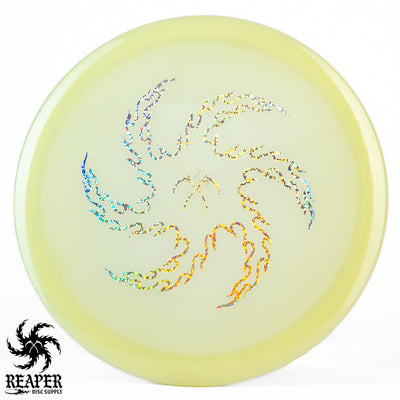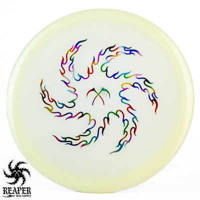 The Champion Glow Leopard3 feels amazing in the hand with a good amount of grip and a fairly flat top for a secure hold. When thrown by beginners, this disc provides a straight flight that slightly fades at the end, while more experienced players with higher arm speeds can use it for hyzer flip shots and long turnover lines. As it beats in, the Leopard3 becomes an excellent hyzer flip disc with a heavy turn and slight fade. The Innova Champion Glow Leopard3 is a fantastic choice for players wanting to learn finesse and hyzer flip techniques or simply looking for a reliable fairway driver to add to their collection.