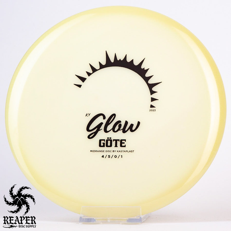 Kastaplast's K1 Glow Gote is the perfect beginner-friendly stable midrange for you next glow-in-the-dark round! Kastaplast is well known for their K1 Glow plastic. It has a bright, long lasting glow charge, is ultra-durable, and still has has decent grip. Pick up a Kastaplast K1 Glow Falk - a great addition to anyone's bag!