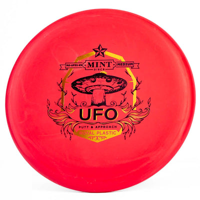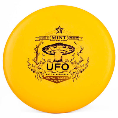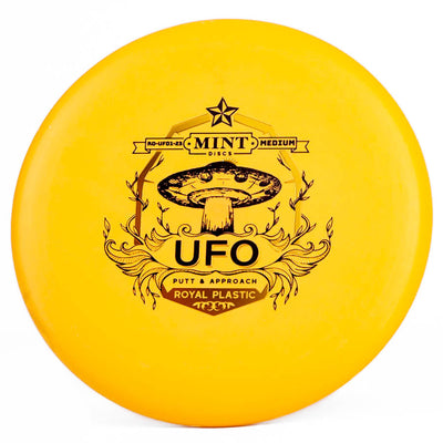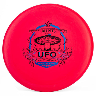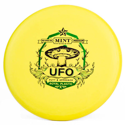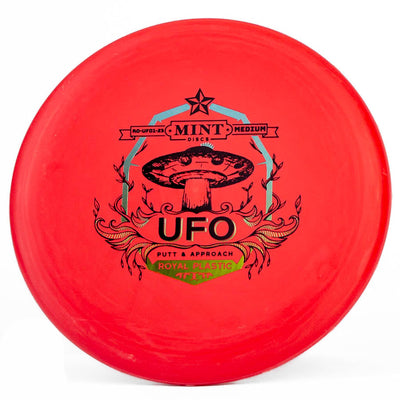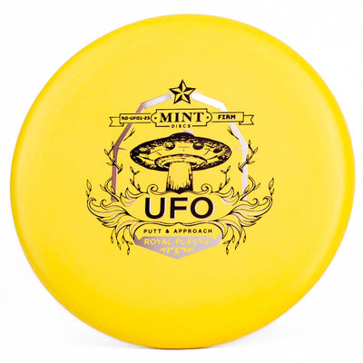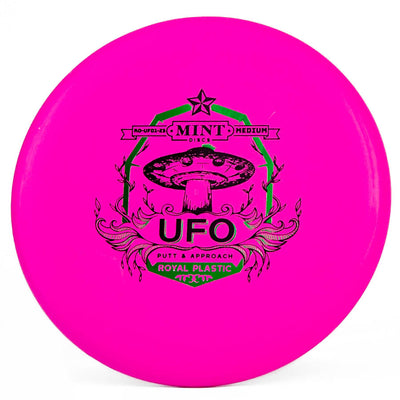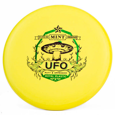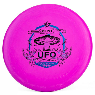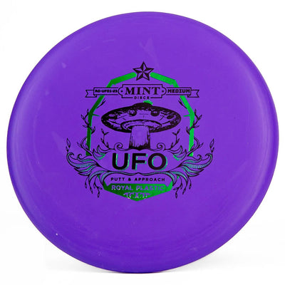Elevate your putting game with the Mint Discs Royal UFO. Available in Soft, Medium, and Firm Royal plastics, this versatile putt & approach disc combines the best features of the Bullet and Profit putters into one disc. With its pro-grade Royal plastic and impressive line-holding capabilities, it's a must-have for any skill level!