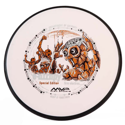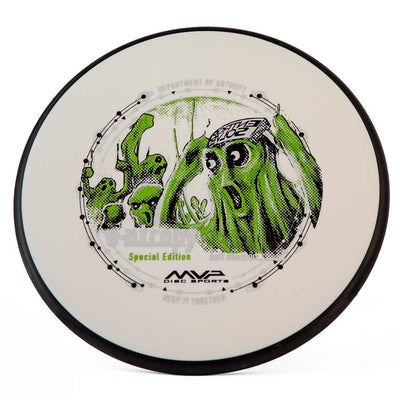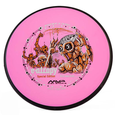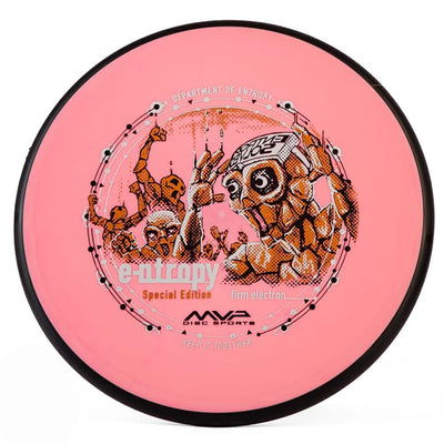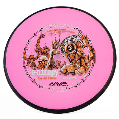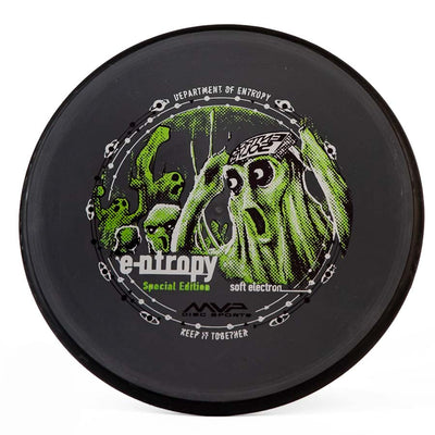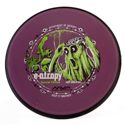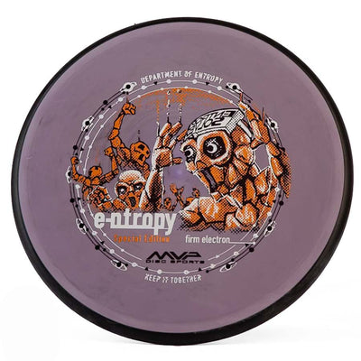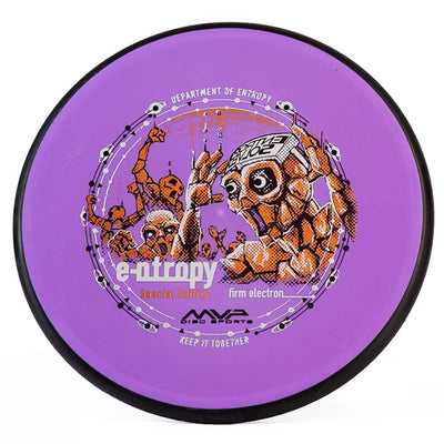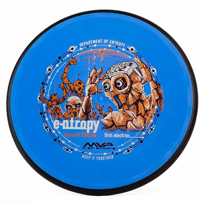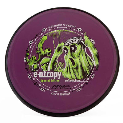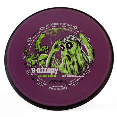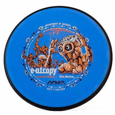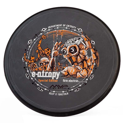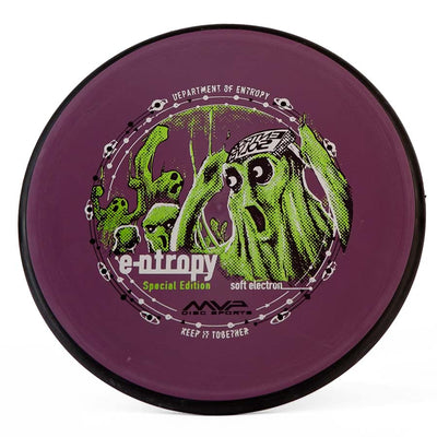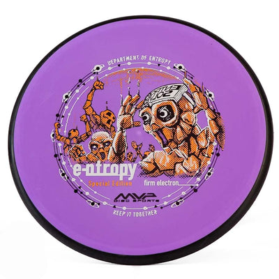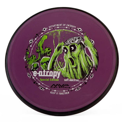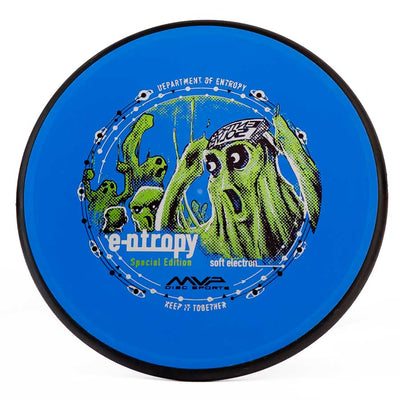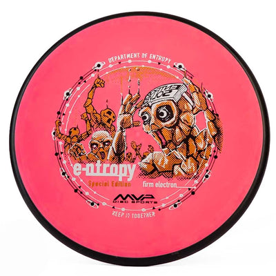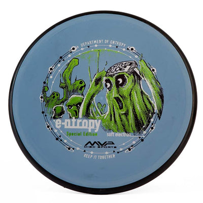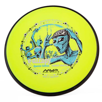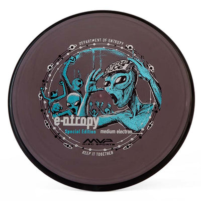 The MVP Electron Entropy is a top-tier putt and approach disc, perfect for players seeking stability and control. Known for its overstable flight, the Entropy excels in headwinds and provides a reliable fade, making it ideal for both forehand and backhand throws. This special edition release features a unique hand-drawn alien stamp, adding a touch of artistry and collectibility to your disc collection.