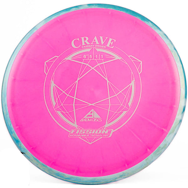 The Axiom Fission Crave is a straight-flying fairway driver that is made with extremely grippy plastic. Fission is the most grippy premium-grade plastic in the Axiom lineup but can still handle damage like a champ. This disc is easy to throw forehand or backhand and will hold any line you need it to. You won't find a more versatile, beginner-friendly disc than the Axiom Fission Crave!