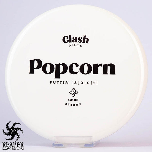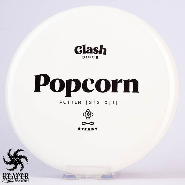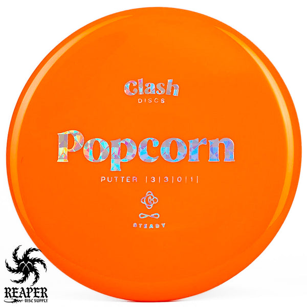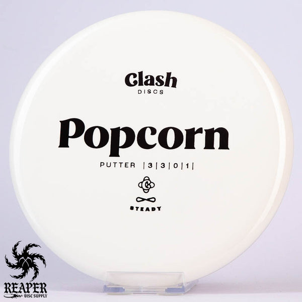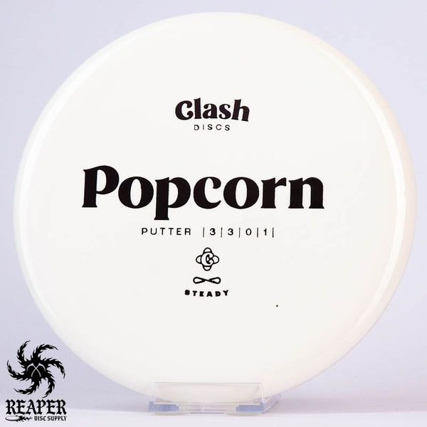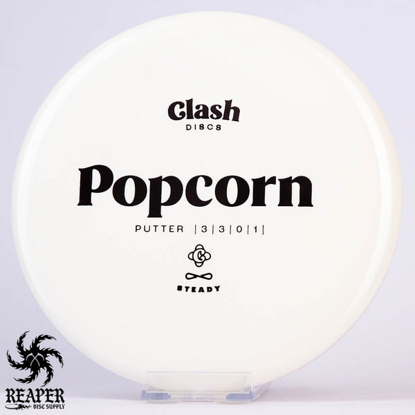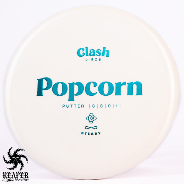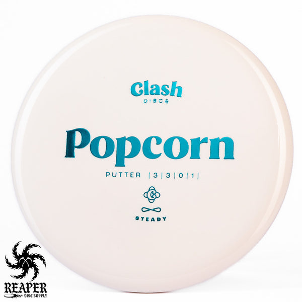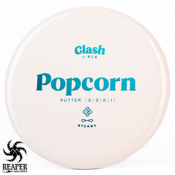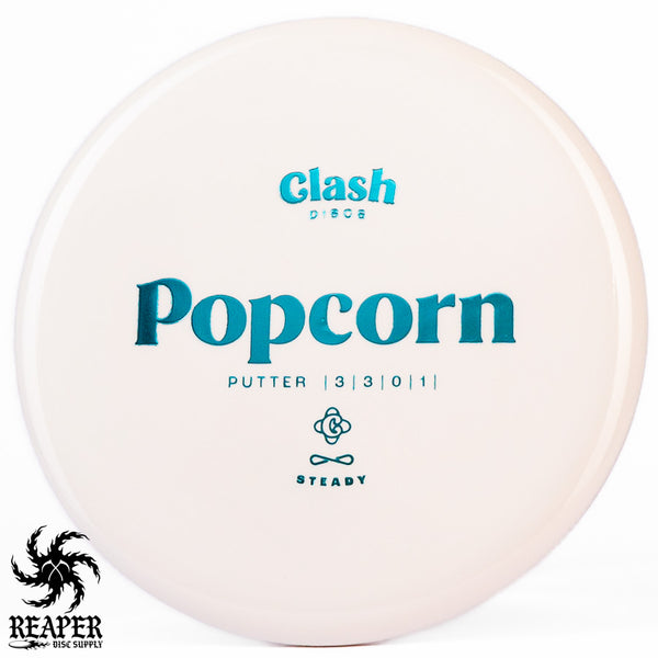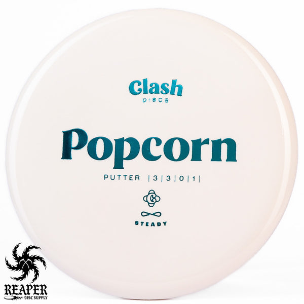 The Popcorn is Clash Discs' stable throwing/approach putter, although you can also use it as a putting putter as well. Clash's Steady plastic feels kind of similar to Kastaplast K1 plastic, which makes this putter a strong candidate for forehand and backhand drives or upshots. Steady plastic is incredibly strong and durable so you won't have to worry about replacing your Popcorn anytime soon (unless you throw in the only water hazard on the course like I did.)