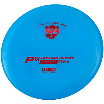 The D-Line Flex 2 P1x is a reliable straight-flying beaded putter that excels at both push putts and spin putts, featuring just enough stability to resist turning over on longer circles edge attempts. This dependable putter sports a low profile and small bead that makes it comfortable for both fan grip and power grip approaches while providing excellent glide that helps it float into the sweet spot of the chains rather than spit out or blow through. Working equally well for touch shots and go-for putts, this workhorse putter in Discmania's base D-Line plastic provides exceptional grip in all conditions without being so soft that it loses its flight integrity when properly seasoned.