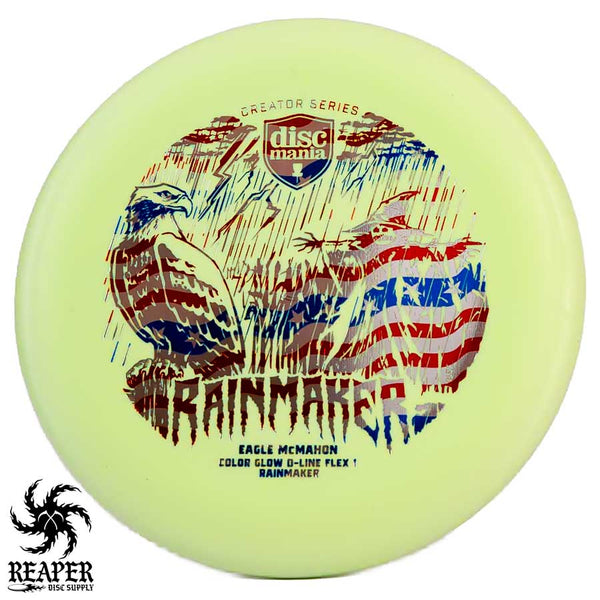 Eagle McMahon swears by its superior design for its versatility, from the tee to the putting green. A lower profile, straighter throw, and distinct bevel help make the Rainmaker a force to be reckoned with. Express your creativity on the greens with the Discmania Eagle McMahon Color Glow D-Line Rainmaker (Flex 1), available in a variety of radiant colors for any round, day or night.