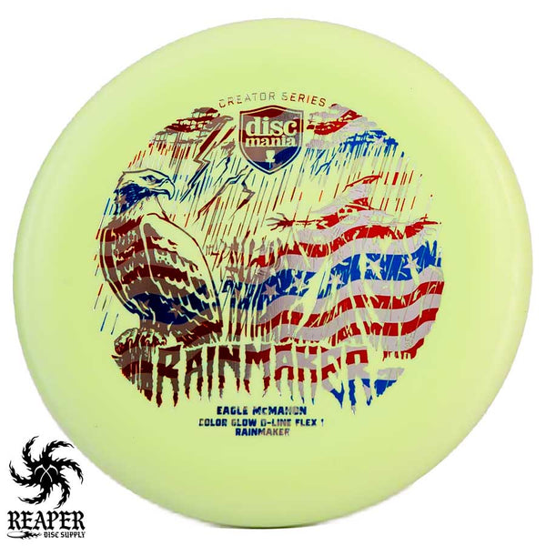 Crafted with a love for the sport, the Discmania Eagle McMahon Color Glow D-Line Rainmaker (Flex 1) is the perfect combination of function and flair.