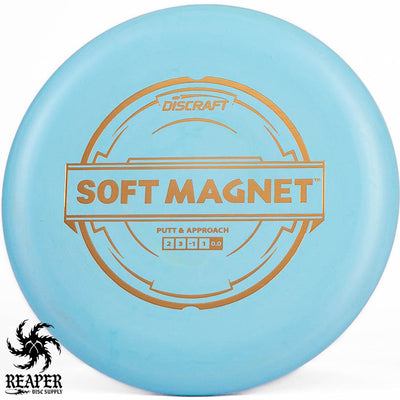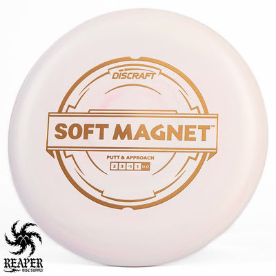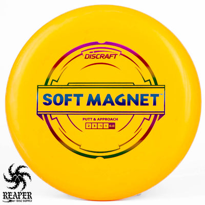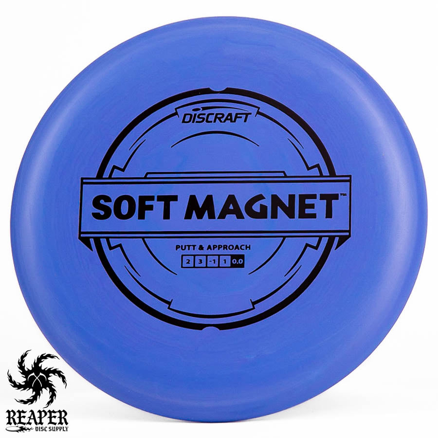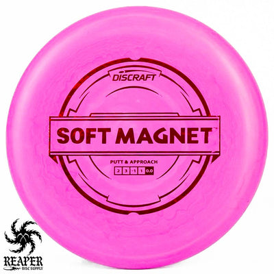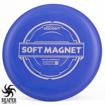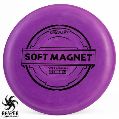 The Discraft Soft Magnet is a stable to understable disc golf putter with a uniquely shaped rim and slightly flexible, grippy plastic. This putter is excellent for learning how to throw on different angles as it has a slow, 2-speed rating and will literally follow any angle you put it on. Whether you are a brand new player or have been throwing them for years, the Discraft Soft Magnet is a great putter for anyone's disc arsenal.
