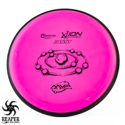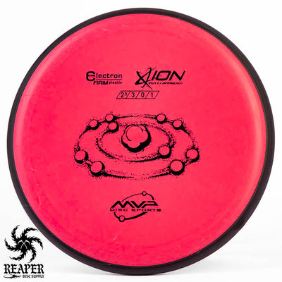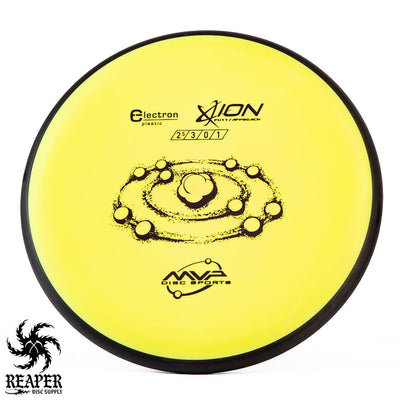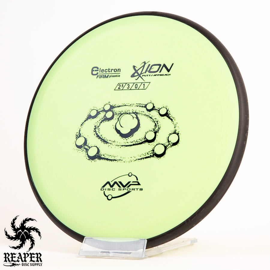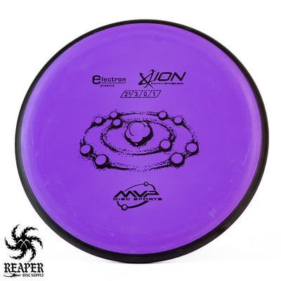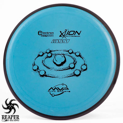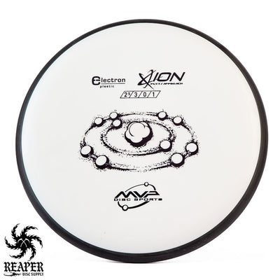 The MVP Electron Ion is a putt and approach disc that is available in Electron Soft, Medium, Firm, and Cosmic Electron plastic. This plastic is extremely grippy and comfortable to hold but isn't the most durable.