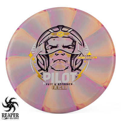 The Streamline Electron Pilot is a super glidey and stable disc golf putter made in comfortable, grippy plastic.