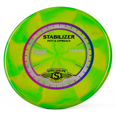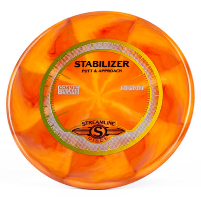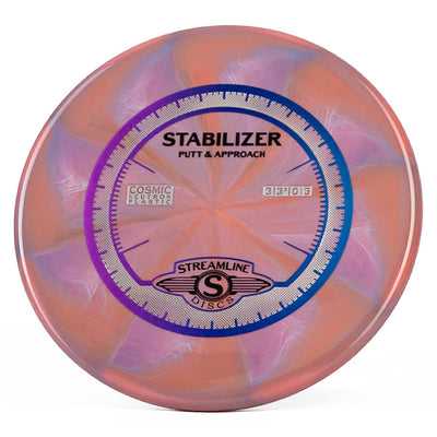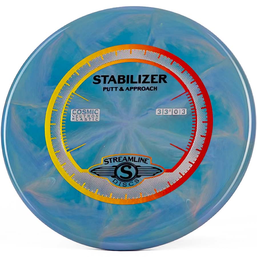 The Streamline Stabilizer is an overstable putt & approach disc made with premium swirly Cosmic Neutron plastic. The perfect throwing putter on windy days!