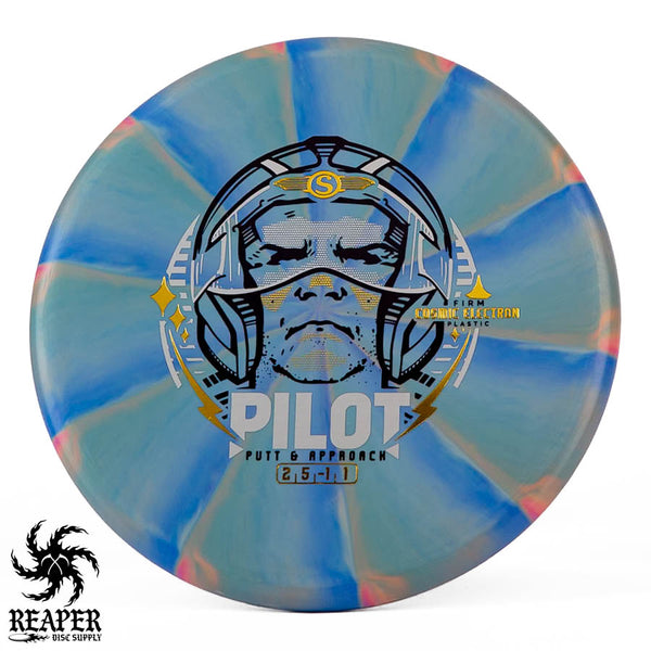 The Streamline Electron Pilot is a super glidey and stable disc golf putter made in comfortable, grippy plastic.