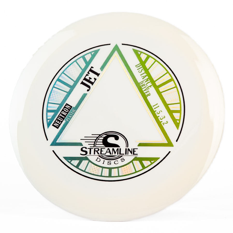 The Streamline Neutron Jet is an understable distance driver perfect for players with low arm speed looking for max distance. This flippy driver is made with Streamline's most popular, premium-grade 'Neutron' plastic which offers both durability and grippability.