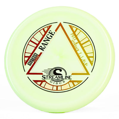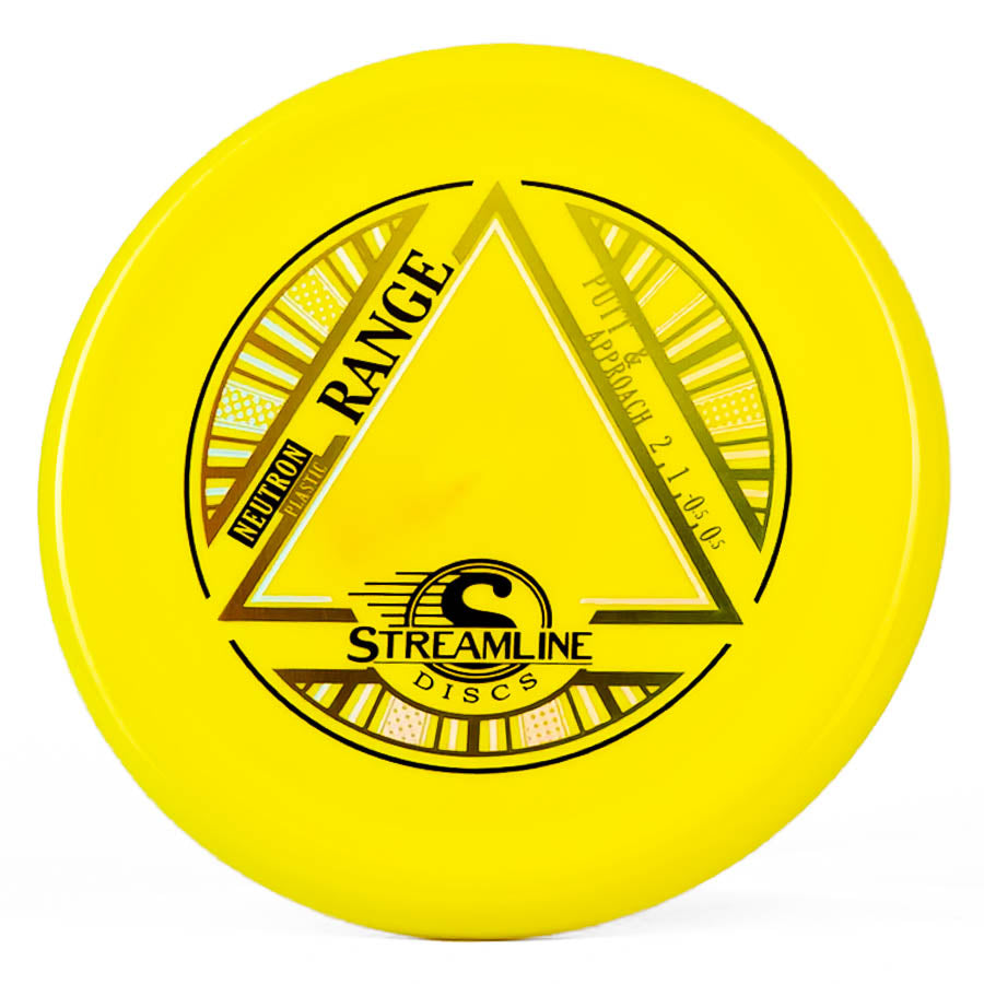 The Streamline Neutron Range is a specialized utility approach disc designed for pinpoint accuracy and exceptional control. Crafted from Streamline's premium Neutron plastic, this disc offers a comfortable grip and durable feel that's ideal for precise shots. With minimal glide and a flight rating of 2 | 1 | -0.5 | 0.5, the Range quickly drops, preventing overshooting on tricky greens and tight gaps. It reliably holds your chosen angle—whether hyzer or anhyzer—without drifting off-course. Similar yet subtly different from the Kastaplast Berg, the Range provides a touch more glide and distance, making it an excellent choice for scrambling in the woods or confidently attacking the basket on challenging approaches.