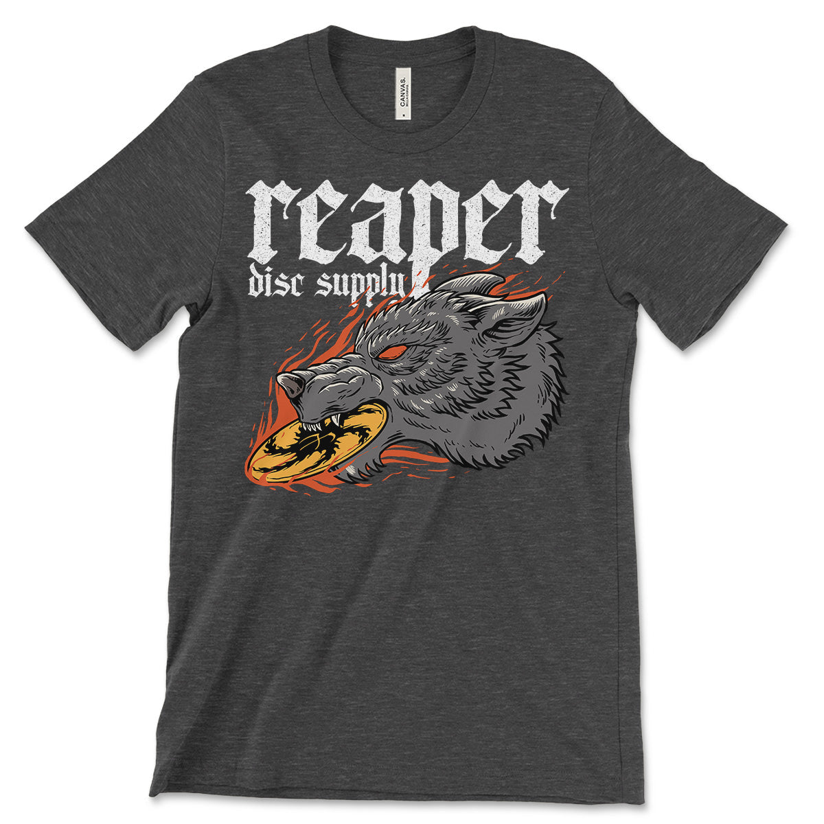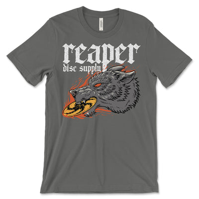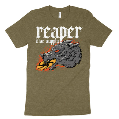 One of our personal favorites - our 'Hungry Wolf' t-shirt features an aggressive looking wolf taking a bit out of our signature logo disc. Available in black, asphalt, dark grey heather and heather olive.