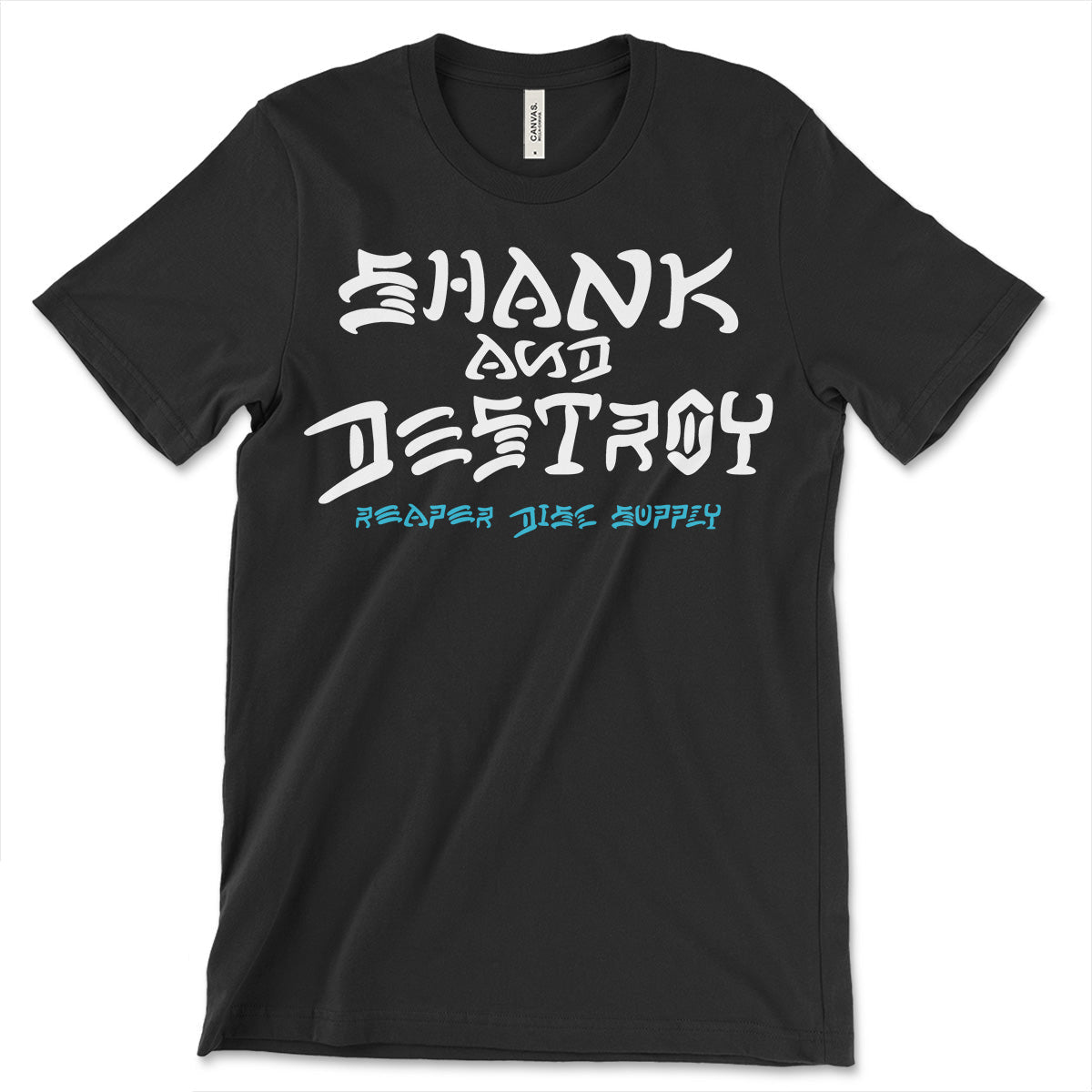 Our 'Shank And Destroy' disc golf t-shirt was hand-designed for all the other players who hit every tree. At least with this shirt, you'll look good doing it.