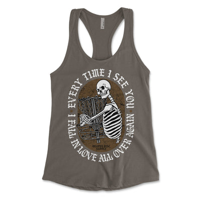 "Every time I see you I fall in love all over again." If this quote describes your relationship with disc golf, then these women's racerback tank tops are just perfect for you.