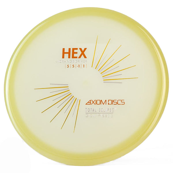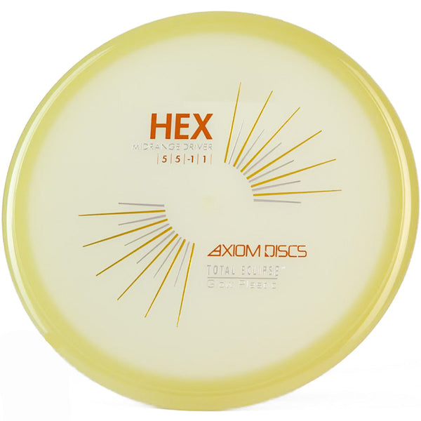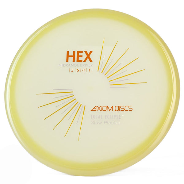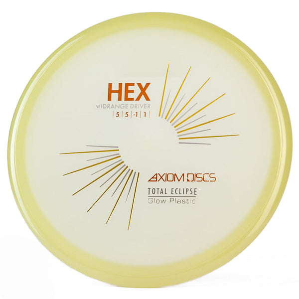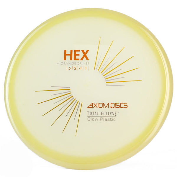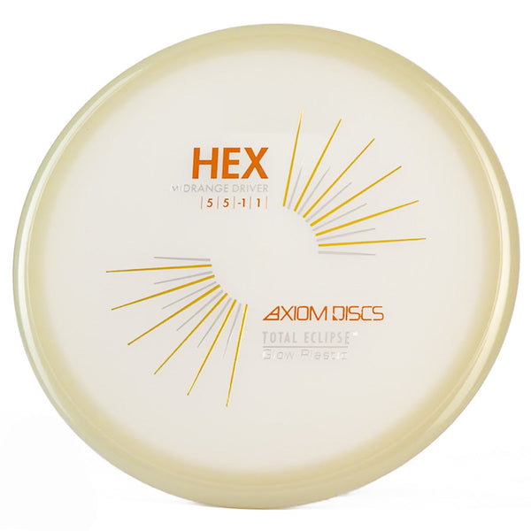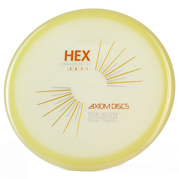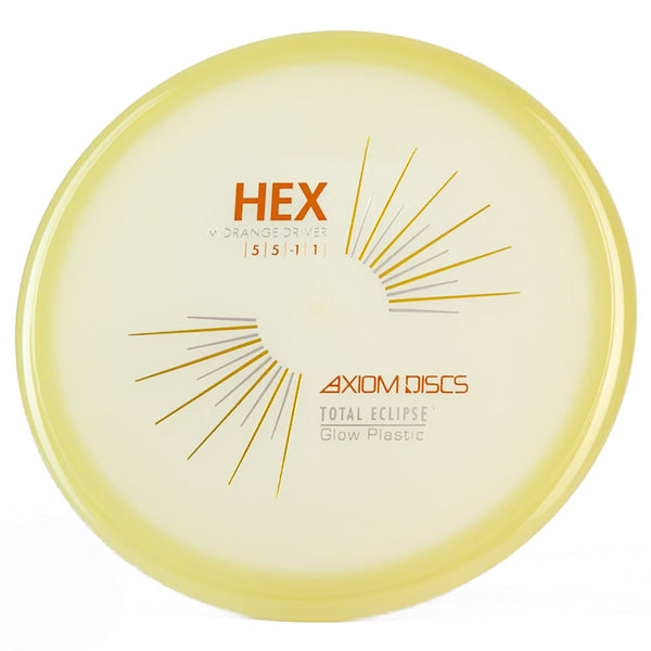 The Axiom Total Eclipse Hex takes the already buttery smooth flight characteristics of the standard Hex and adds supernatural glow performance with its innovative dual-glow construction, perfect for those twilight rounds when you need precise midrange control. You're going to love how this disc maintains that perfect neutral stability whether you're throwing touch shots through tight gaps or working those finesse approaches, with just enough high-speed turn to hold whatever line you put it on without worrying about an aggressive fade. The Total Eclipse plastic's enhanced GYRO effect gives you confidence for those power grip releases when you need to park your upshots, while the dual-glow technology ensures maximum visibility during those spooky glow rounds where accuracy is everything.