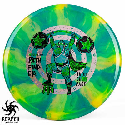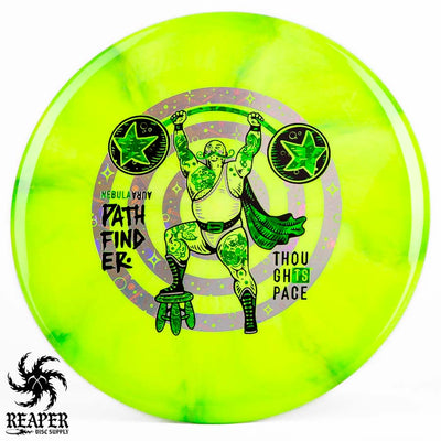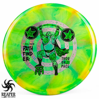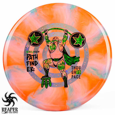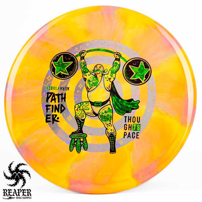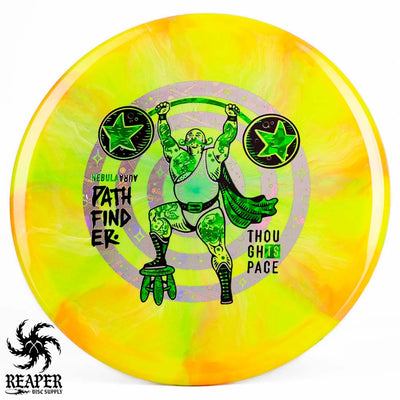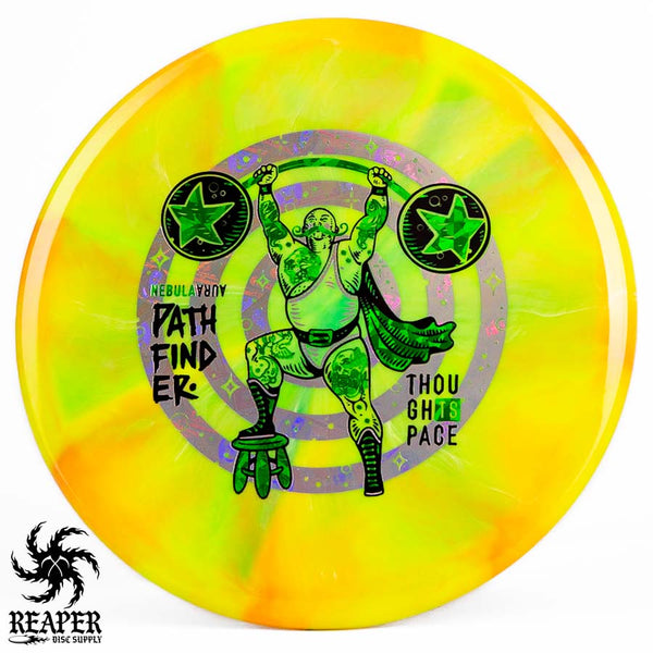 Experience the premium performance of the Thought Space Athletics Nebula Aura Pathfinder. This mid-range disc offers consistent flight, control, and the perfect disc for beginners!