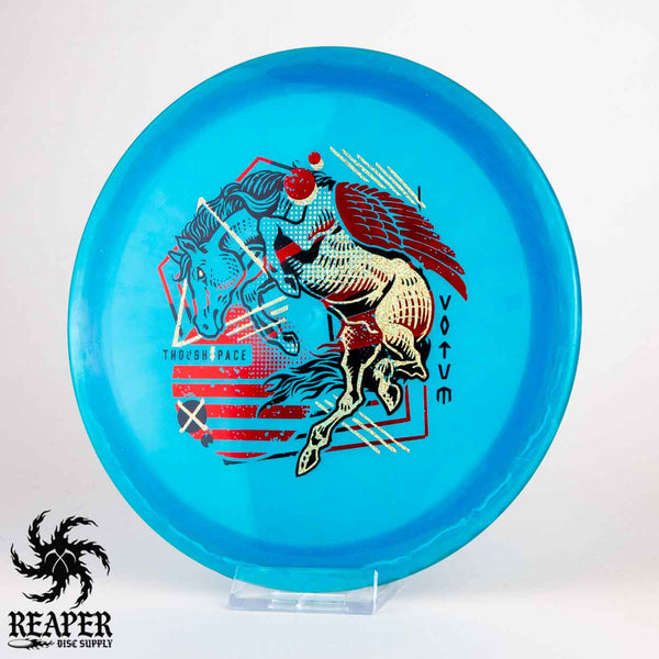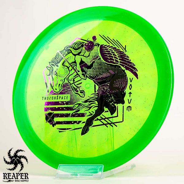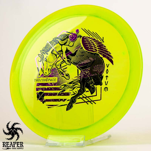 The Thought Space Votum flies similar to a Discraft Undertaker or Innova Halo Star Savant. We tested this disc and found it to be slightly more overstable than its numbers suggest. If you are looking for a versatile fairway/control driver with exceptional plastic, pick up a Votum before they're gone!