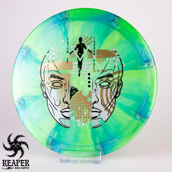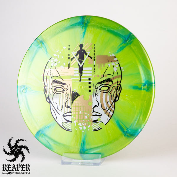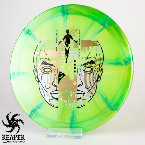 The Thought Space Athletics Nebula Ethereal Votum is a stable 9-speed driver made with premium swirly plastic. The Nebula Ethereal plastic feels similar to Discraft's Big Z plastic, and the small rim fits nicely in hand. Nebula Ethereal plastic is very durable, takes a long time to beat-in, and has awesome swirly colors.