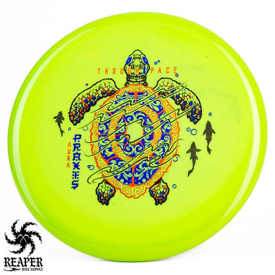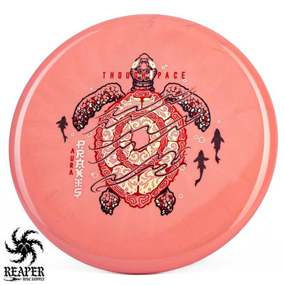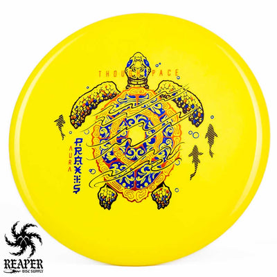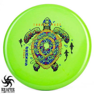 The Thought Space Athletics Aura Praxis is a stable, beadless putter that can be used for short drives, approach shots, and putting. Thought Space's Aura plastic is durable and has excellent grip - very similar to Innova's Star plastic.