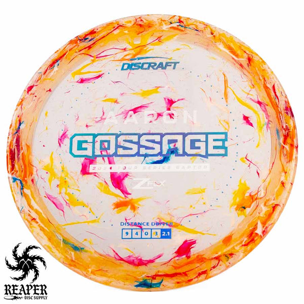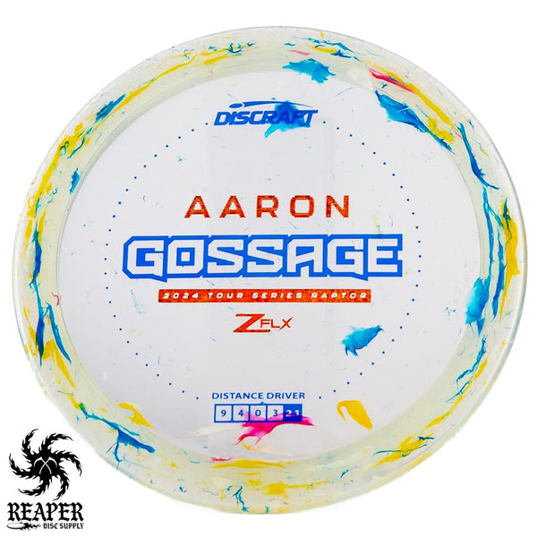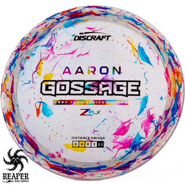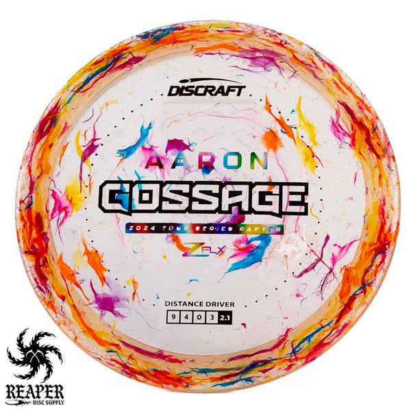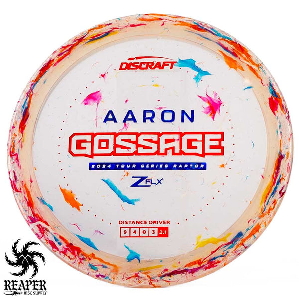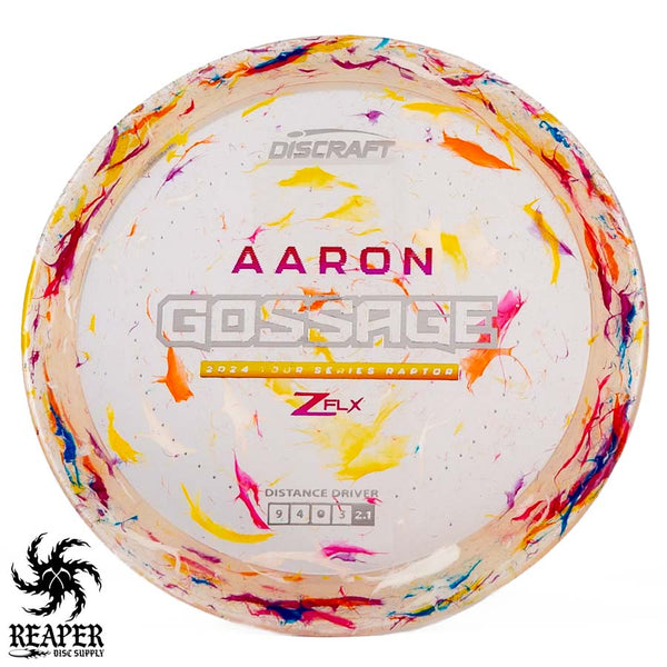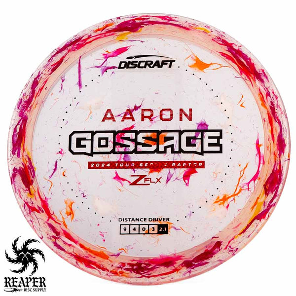 The Aaron Gossage Discraft Z FLX Raptor is a versatile and overstable control driver, now available in a unique translucent, Jawbreaker-colored plastic that offers more flexibility than traditional Z plastic. This 2024 Tour Series disc is designed for precision and reliability, featuring Aaron Gossage's tour series stamp to support his journey on the Disc Golf Pro Tour.