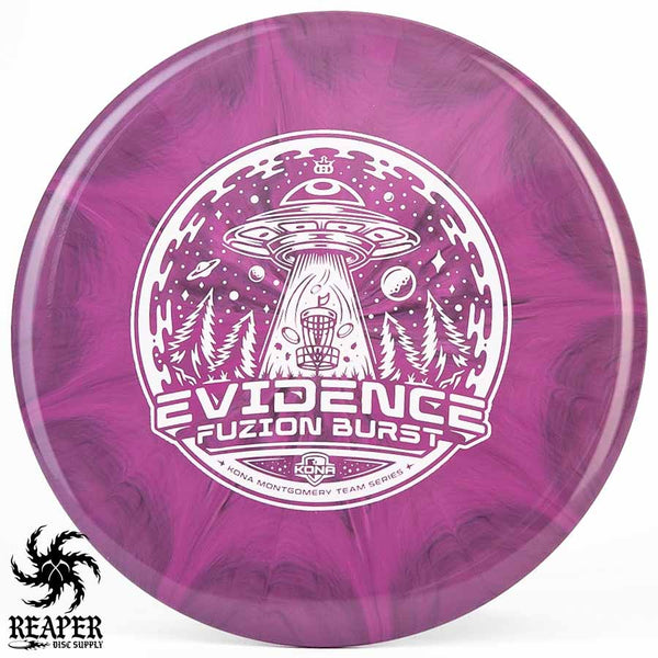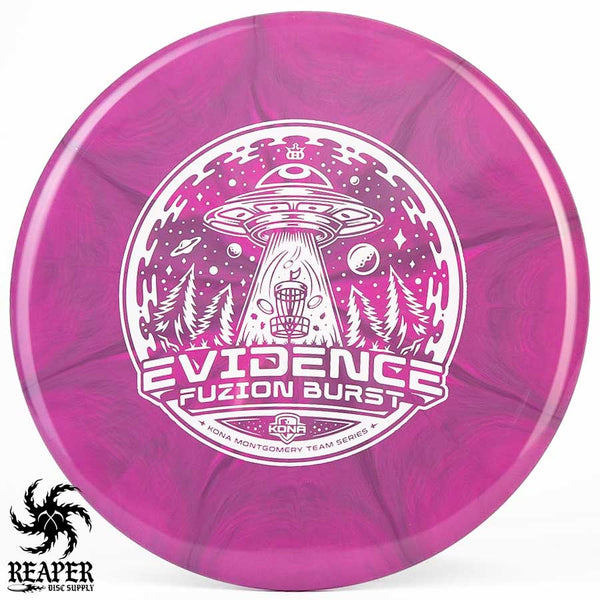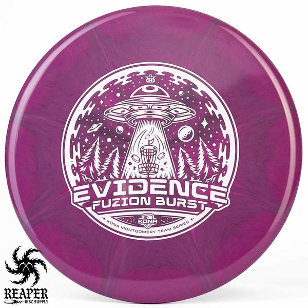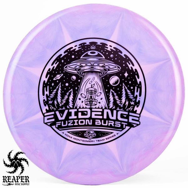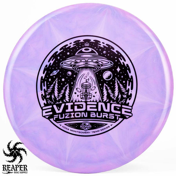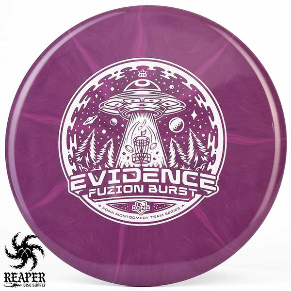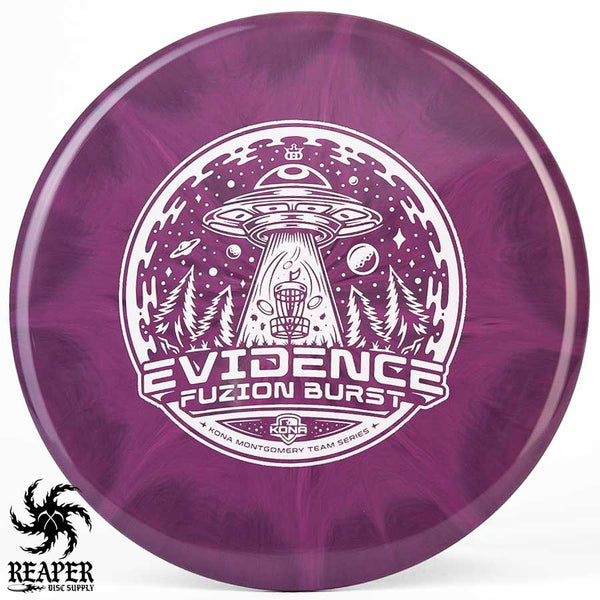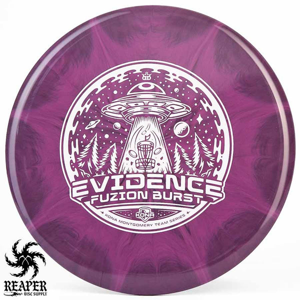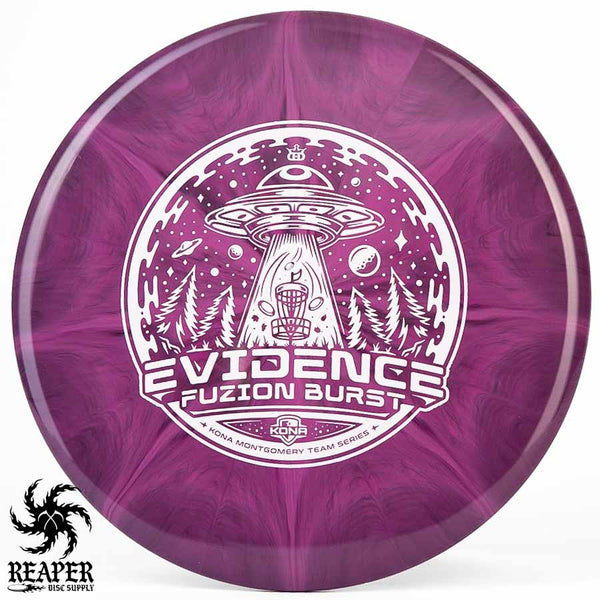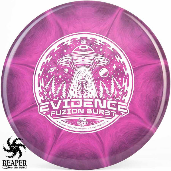 The Kona Montgomery Tour Series Evidence is made with Dynamic Discs premium grade Fuzion Burst plastic and an awesome UFO-themed stamp. The Fuzion Burst Evidence is an understable midrange that is perfect for beginners as it is easy to throw and provides a straight, stable flight path even when thrown with slow speed. Great for hyzer flips, rollers and turnover shots; make your friends jealous with the Dynamic Discs Fuzion Burst Evidence!