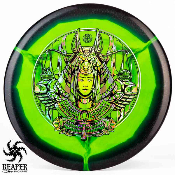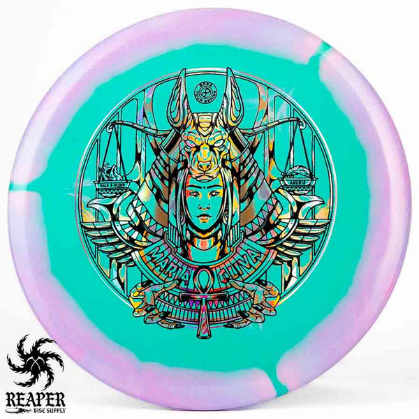 Maria Oliva loves her Anubis so it only made sense for Infinite Discs to make it her Tour Series disc this year. This dead-straight flyer is perfect for any level of disc golfer and who could resist that incredible stamp and Halo plastic? Grab an Infinite Discs Halo Anubis while you can!