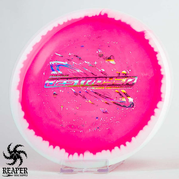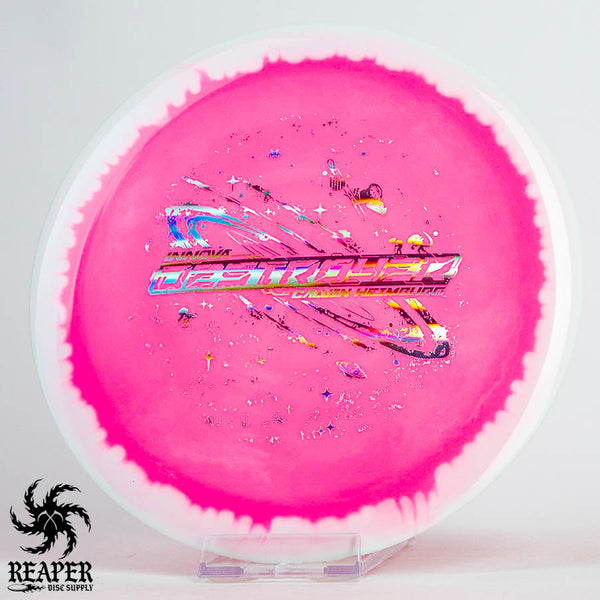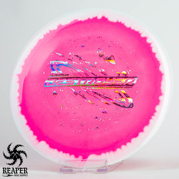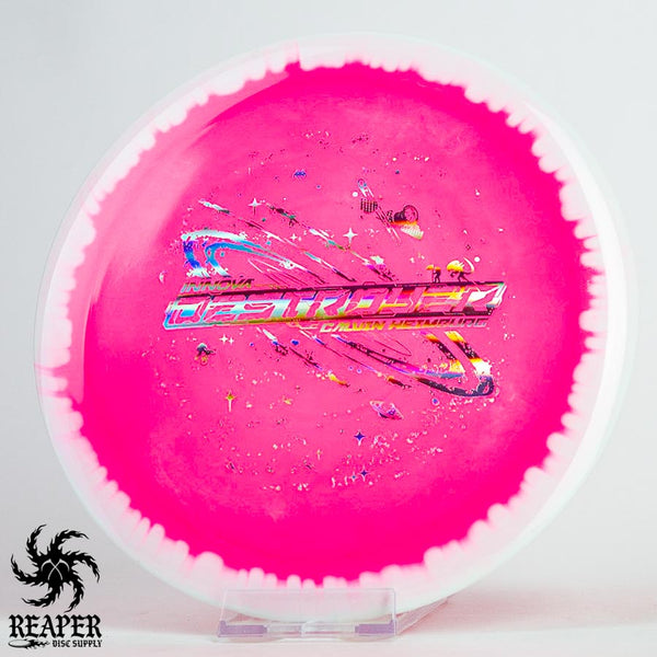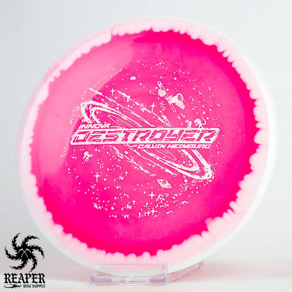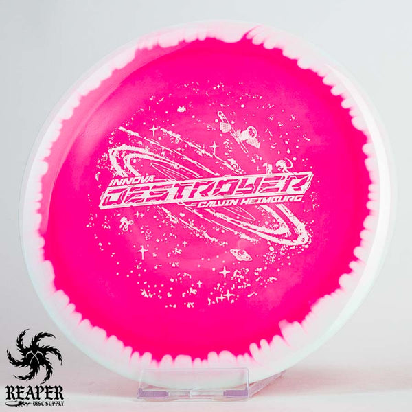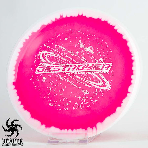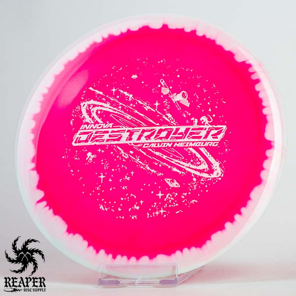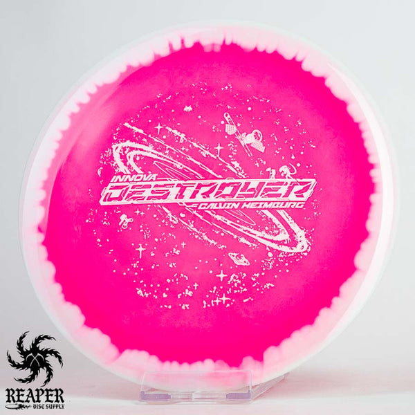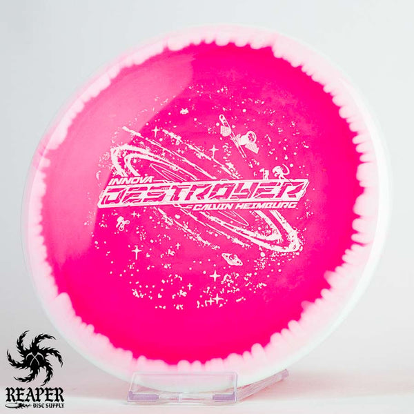 These Innova Halo Star Calvin Heimburg Tour Series Destroyers have an awesome space-themed stamp on premium halo star plastic! Calvin Heimburg (and pretty much every other Innova player) swears by the Destroyer, and usually bag more than one. These Heimburg Tour Series Destroyers come in some unique halo plastic colors that make the stamp pop.
