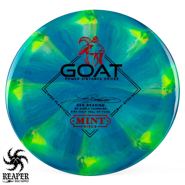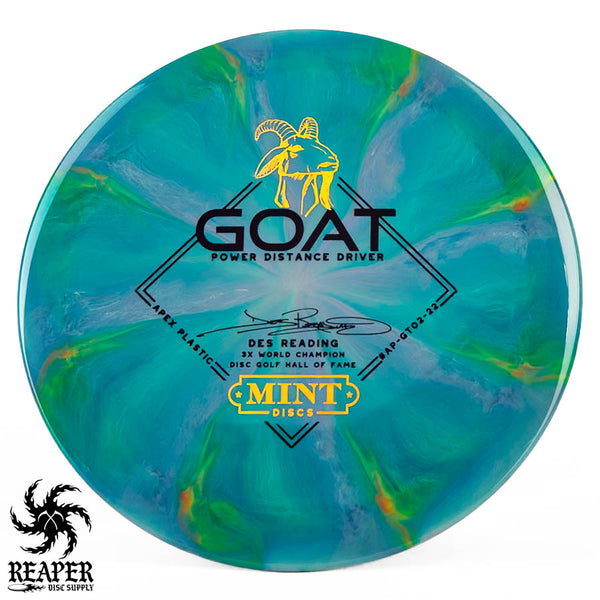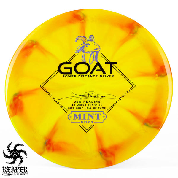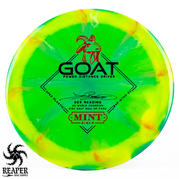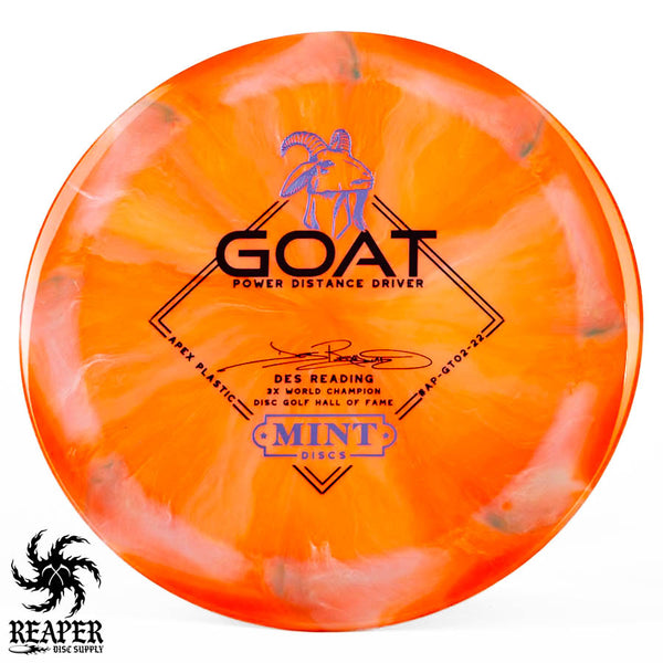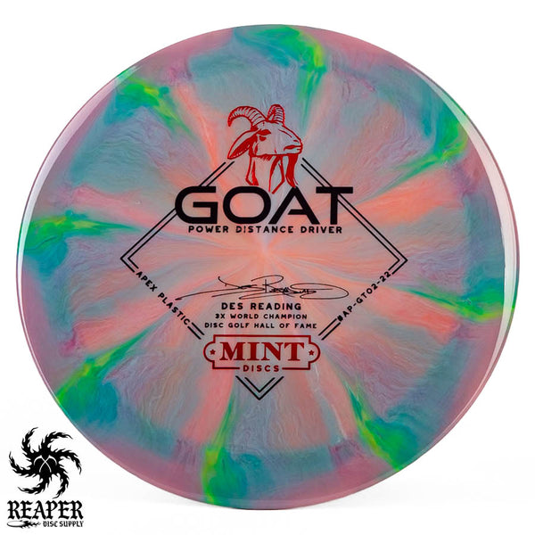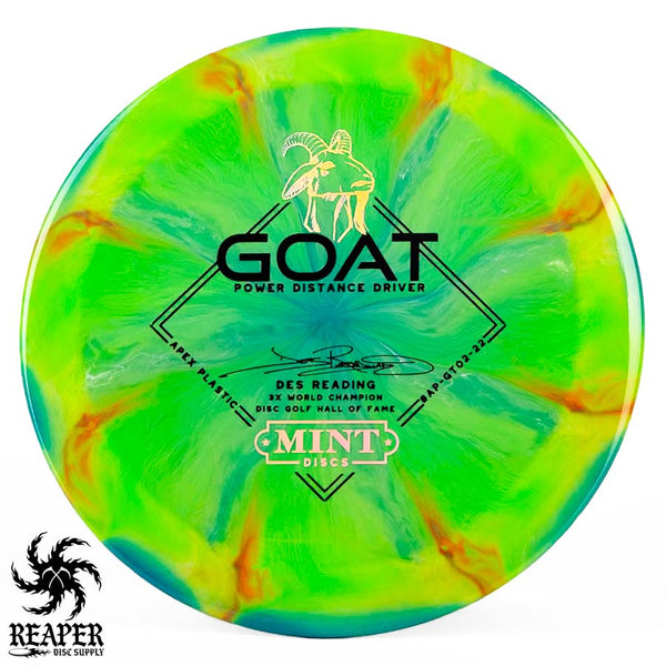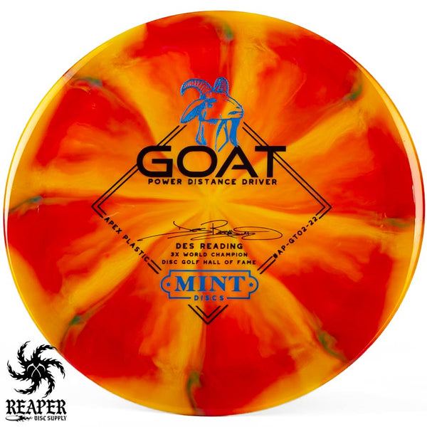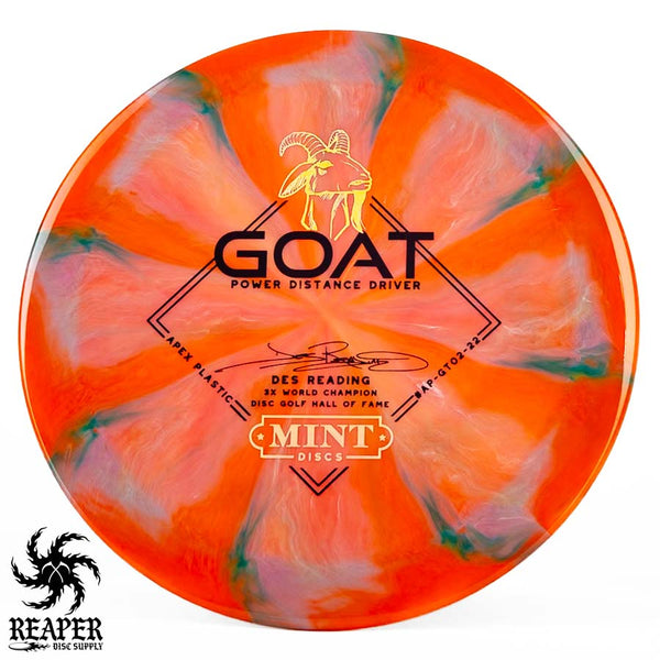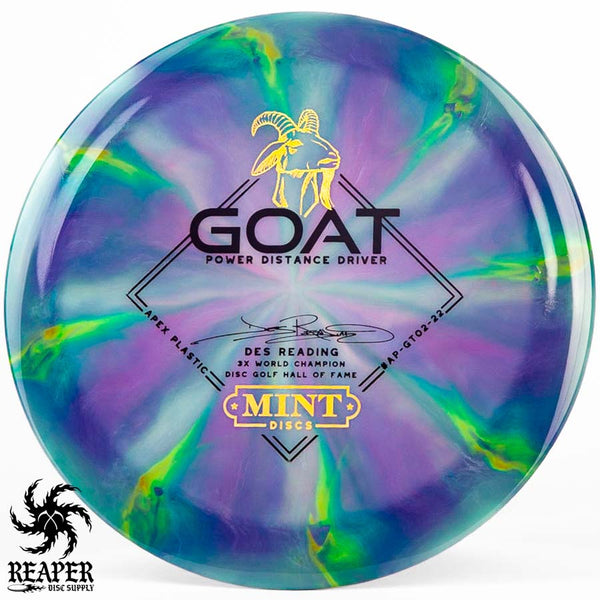 The Mint Discs Goat is an overstable distance driver that is the signature disc of the 3x FPO champion Des Reading.