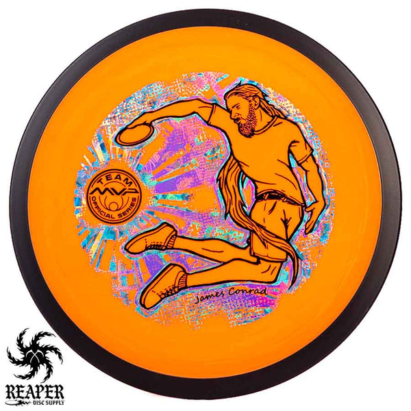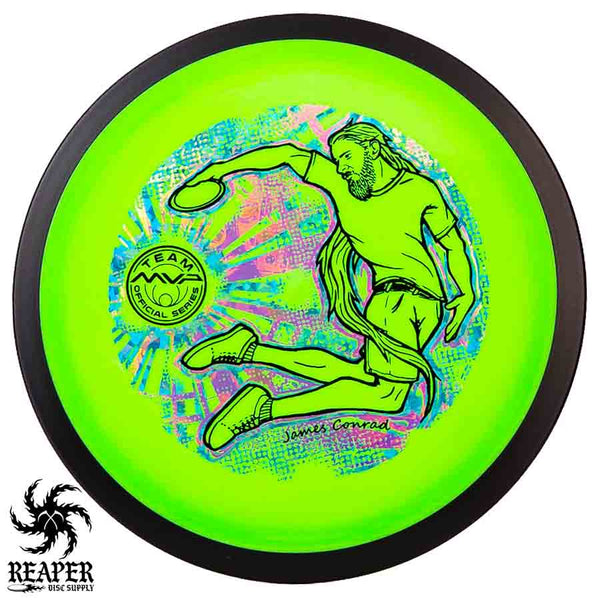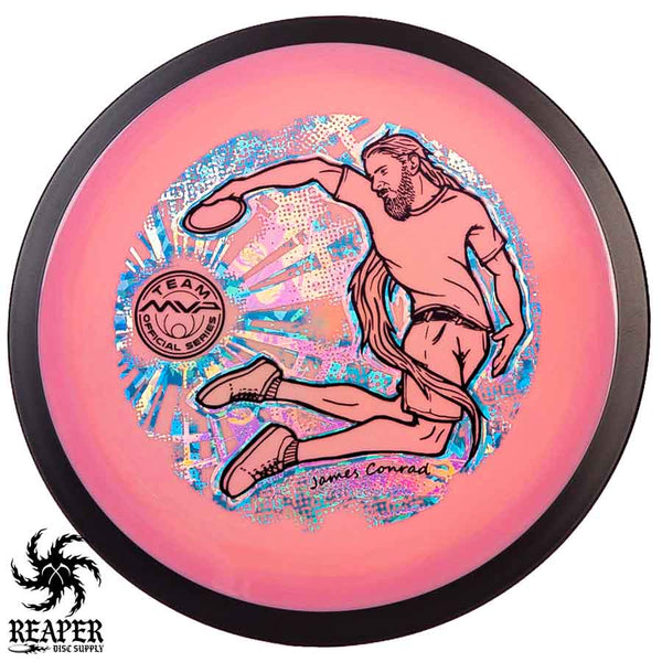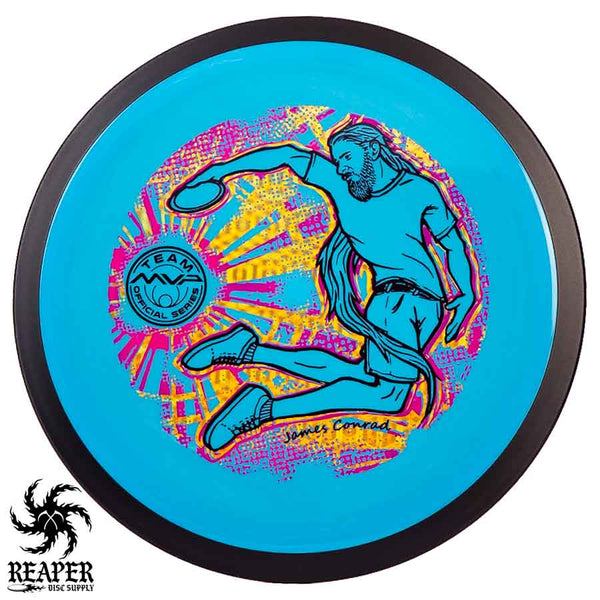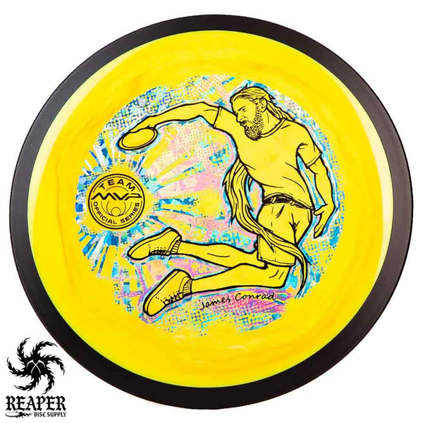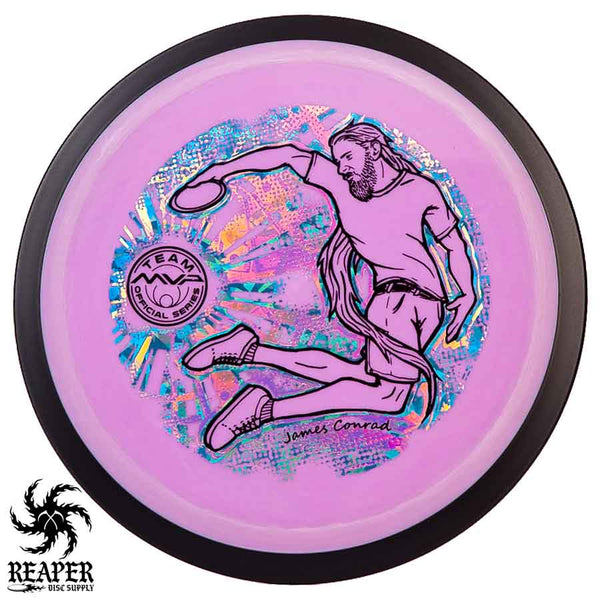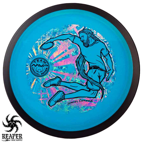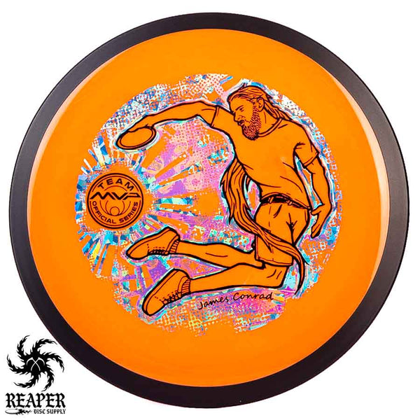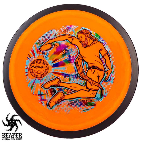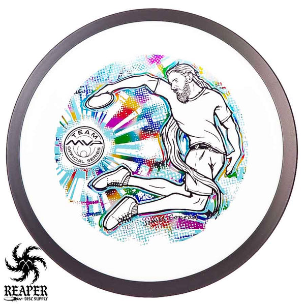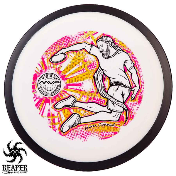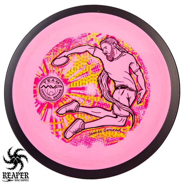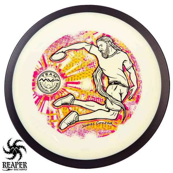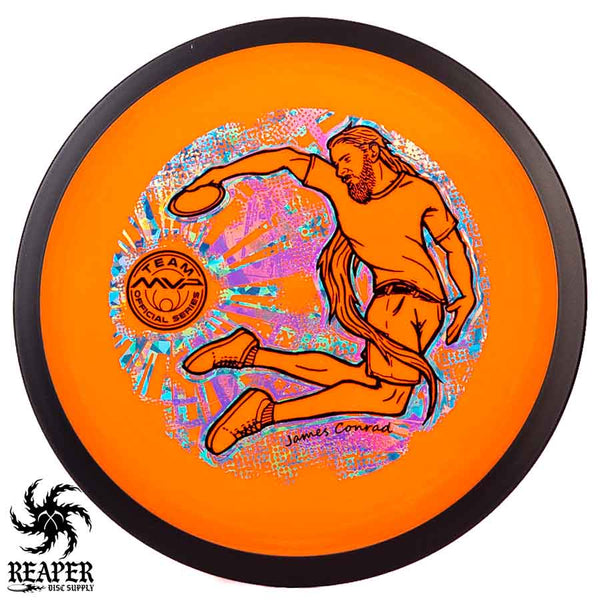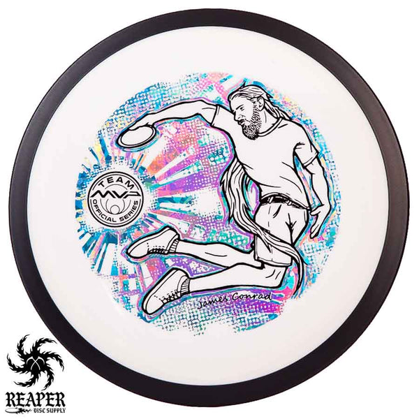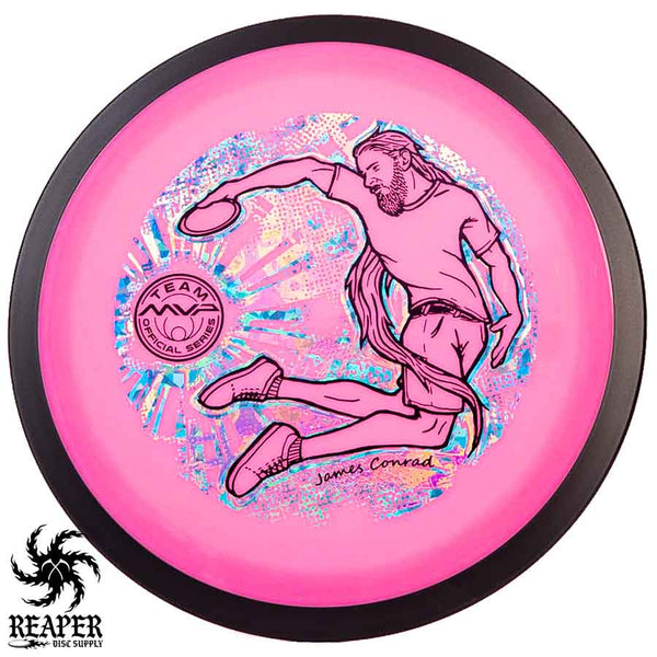 The MVP "Twisty James" Neutron Zenith is James Conrad's 2023 Signature Disc and boy is it awesome. Featuring a "twisty" stamp reminiscent of his popular "Bendy James" Signature Volt, this is one release you won't want to miss. The 3-foil stamp was designed by famous disc golf artist DoubleRam designs and shows James Conrad flying through the air in all his glory!