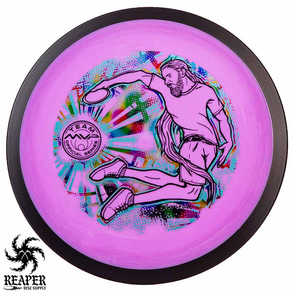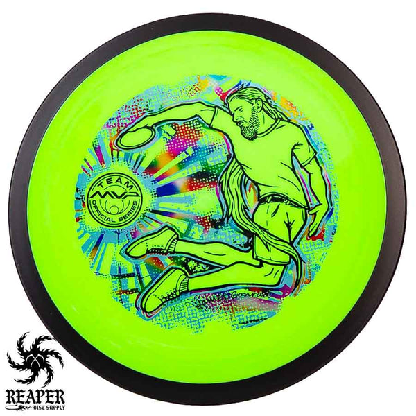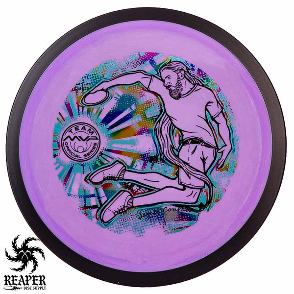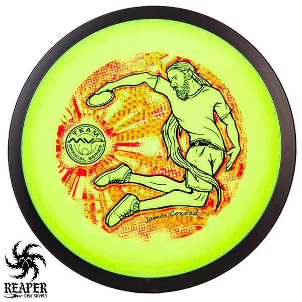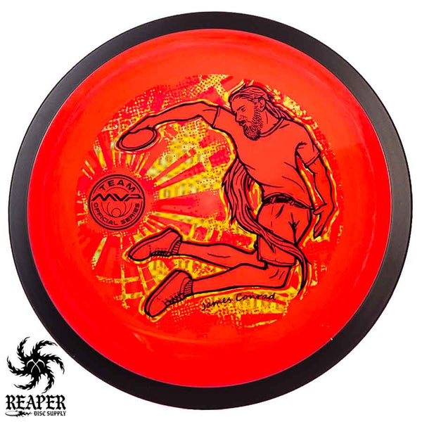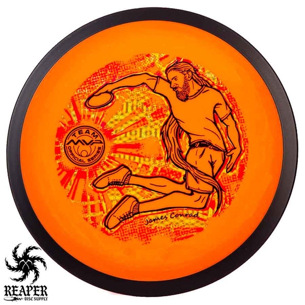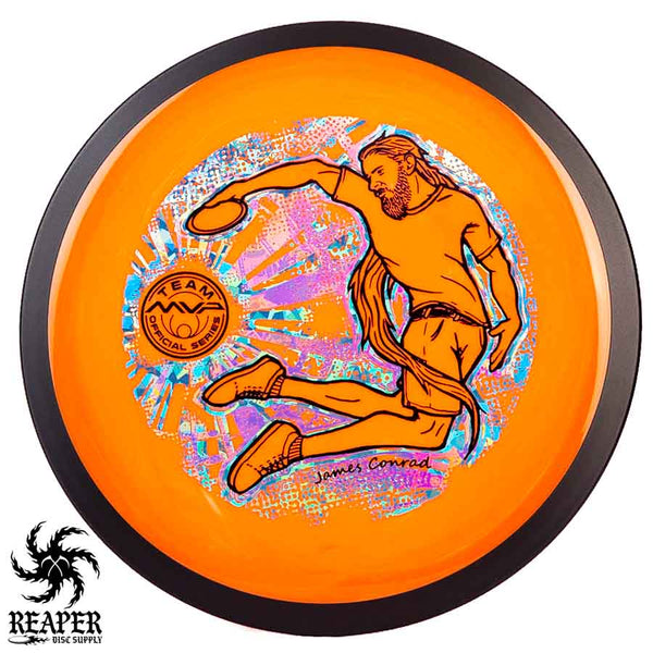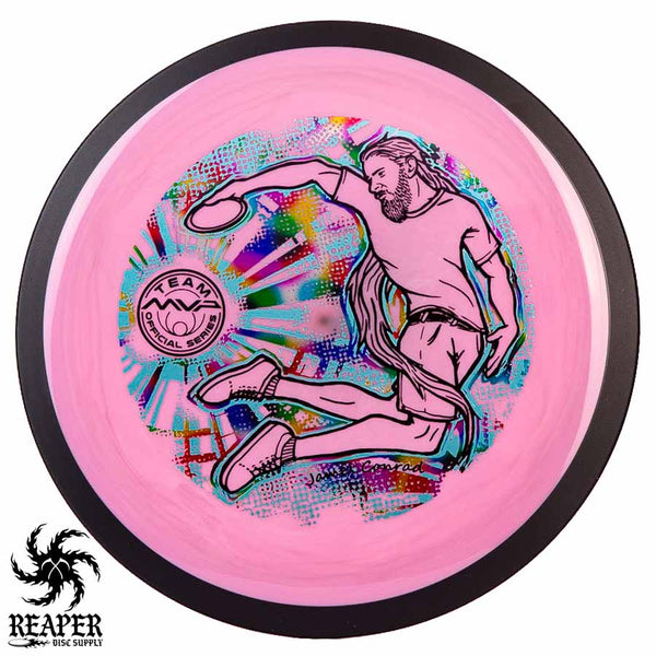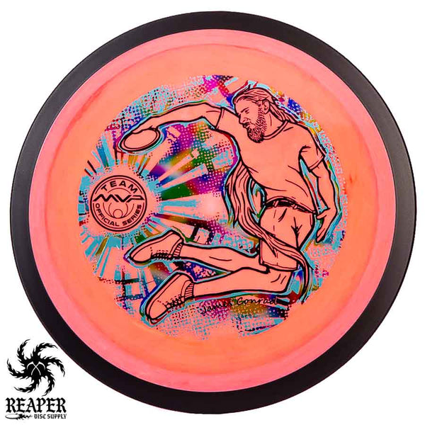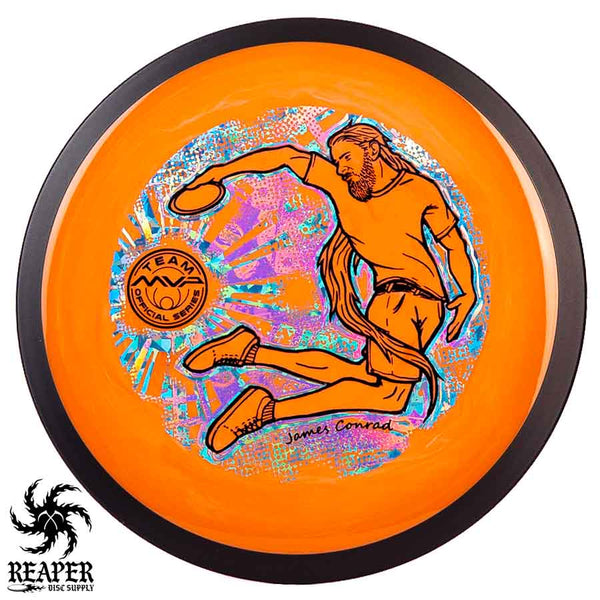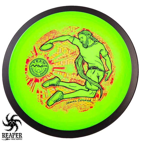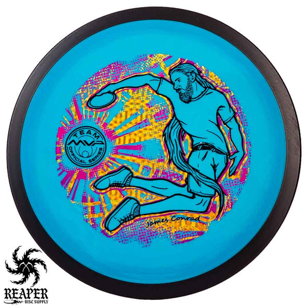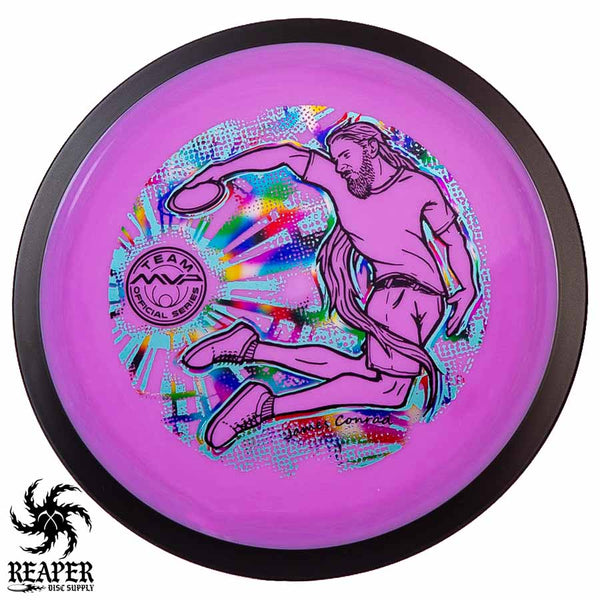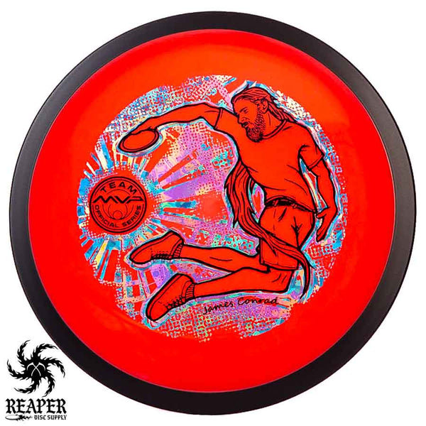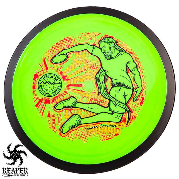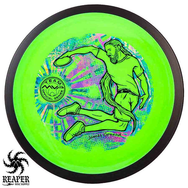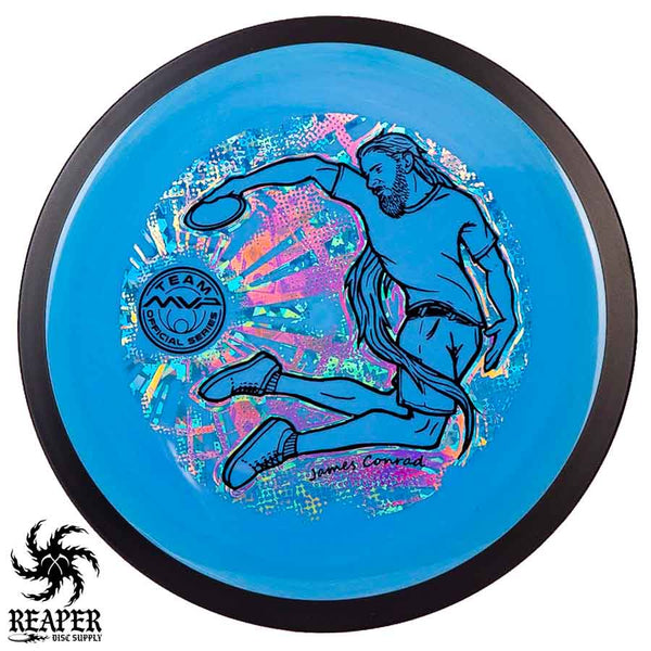 The MVP "Twisty James" Neutron Zenith is James Conrad's 2023 Signature Disc and boy is it awesome. Featuring a "twisty" stamp reminiscent of his popular "Bendy James" Signature Volt, this is one release you won't want to miss. The 3-foil stamp was designed by famous disc golf artist DoubleRam designs and shows James Conrad flying through the air in all his glory!