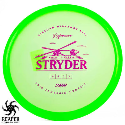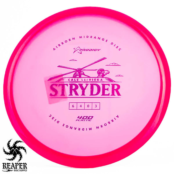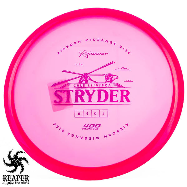 The Prodigy 400 Stryder combines dependable midrange performance with Prodigy's popular 400-series plastic, which offers incredible grip and resilience. This disc is crafted for accurate, straight shots with a touch of end-of-flight forward fade. Prodigy's 400 plastic provides a comfortable, reliable hold in various weather conditions, making the 400 Stryder a solid choice for precise throws that can handle torque resistance.