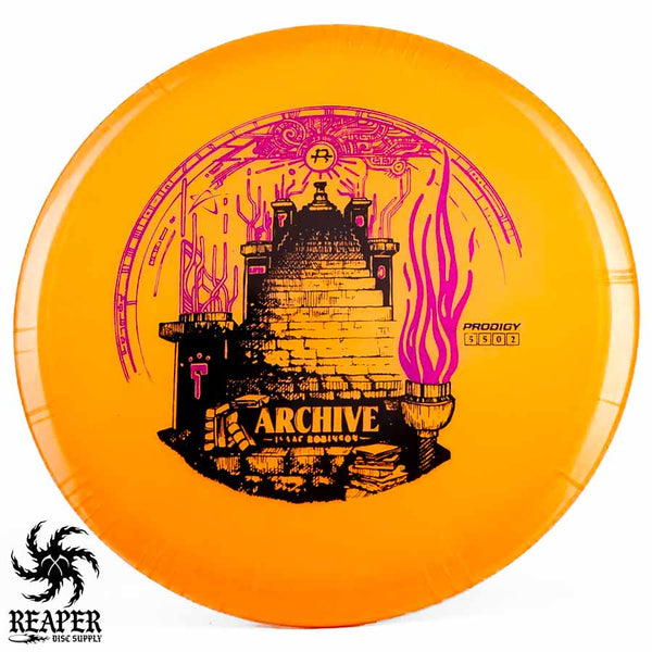 The Prodigy 500 Archive midrange stands out with its premium 500 plastic, combining a stiff, confident grip with a durable, solid rim for consistent throws. This plastic's pearlescent finish adds aesthetic appeal to its reliable, fade-focused flight, making the 500 Archive a top choice for players seeking both style and substance in their midrange game.
