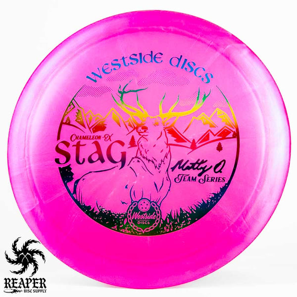 If you didn't think the Westside Discs Chameleon X Stag could get any cooler, wait until you see these Matty O Team Series. The Stag is of the most popular molds in Westside's lineup and now you can get one with a Matt Orum Team Series stamp in Chameleon X plastic. This straight flyer will look good in any player's bag!