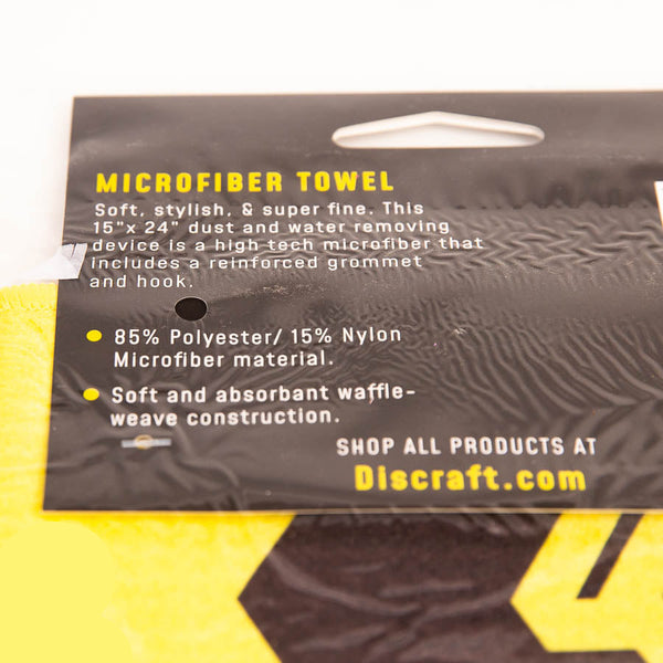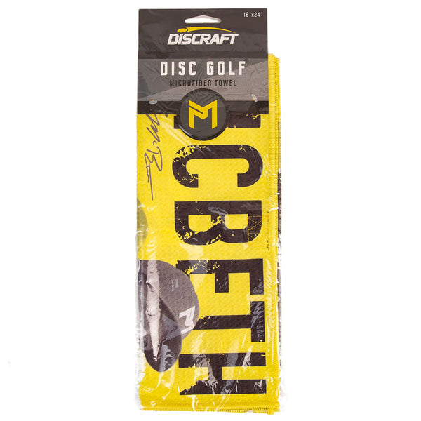 These Paul McBeth Discraft disc golf towels are made with microfiber materials, are 15" x 24", and come with a reinforcement grommet & hook.