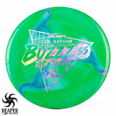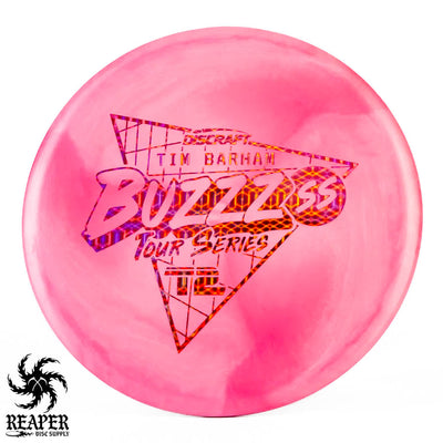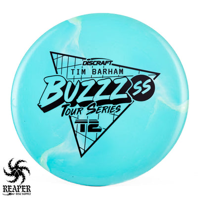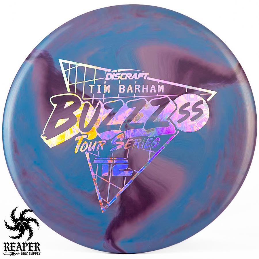 Tim Barham is famous for throwing is Buzzz SS so it makes sense that his Tour Series disc would be a Discraft Swirly ESP Buzzz SS. Very limited stock available!