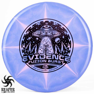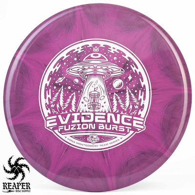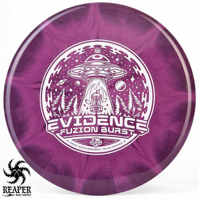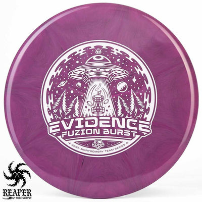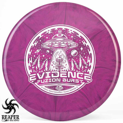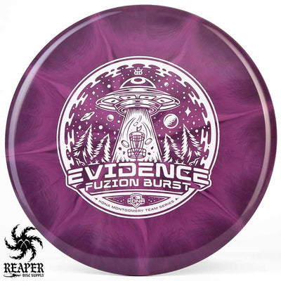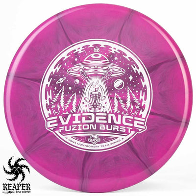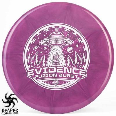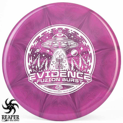 The Kona Montgomery Tour Series Evidence is made with Dynamic Discs premium grade Fuzion Burst plastic and an awesome UFO-themed stamp. The Fuzion Burst Evidence is an understable midrange that is perfect for beginners as it is easy to throw and provides a straight, stable flight path even when thrown with slow speed. Great for hyzer flips, rollers and turnover shots; make your friends jealous with the Dynamic Discs Fuzion Burst Evidence!